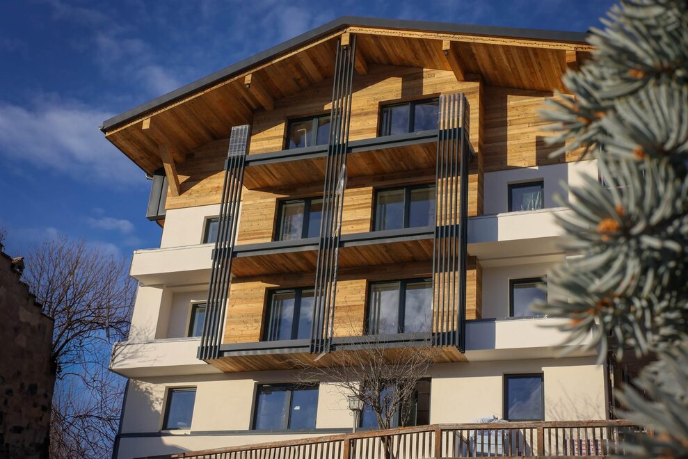 В 200 метрах от отеля, полностью отремонтированная в декабре 2024 года вилла является автономным и панорамным зданием на краю леса, оснащенным лифтом и прилегающей частной парковкой. Просторные и уютные люксы с панорамным видом на цепь Лагорай, с паркетом, столом и стульями, чайником, ЖК-телевизором, беспроводным интернетом, ванной комнатой с душем и комплектом с феном, мягкими полотенцами и «в alpine» ароматами, просторным панорамным балконом. Возможность предоставления детской кроватки. Все остальные услуги находятся в отеле.