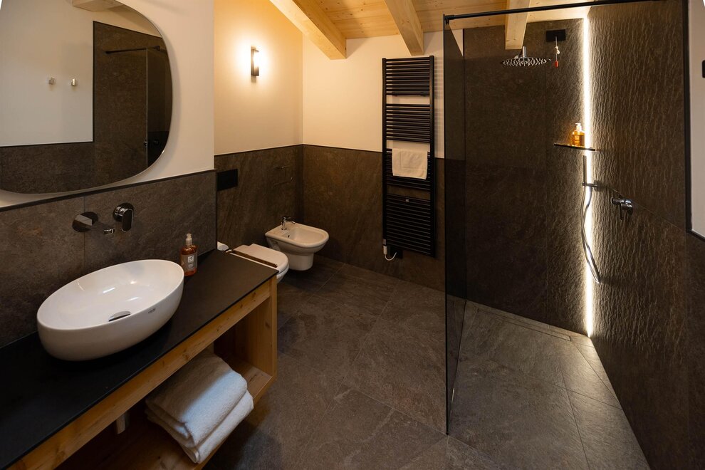 Large, spacious suites with panoramic views of the Lagorai mountain range. Located 200 meters from the hotel, the villa, completely renovated in December 2024 is an autonomous and panoramic building on the edge of the forest, equipped with an elevator