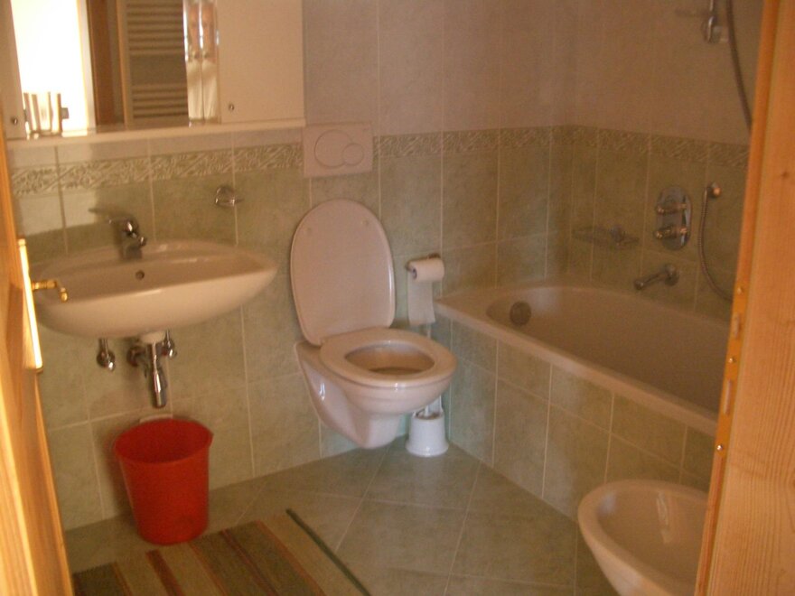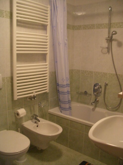 bathtub with integrated shower, число туалетов: 1, умывальник, число ванных комнат: 1, туалет, биде, горячая / холодная вода, ванная комната, туалет, ванна, душ или ванна