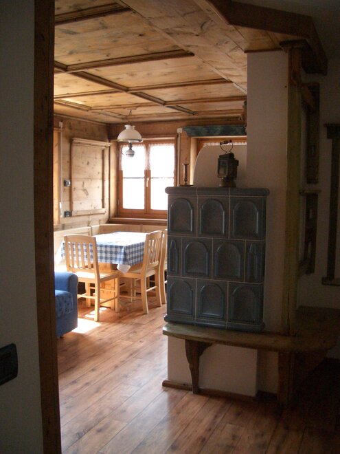 Расположена на первом этаже, площадью 60 м2 с балконами на восток и запад. Трехкомнатная квартира с местами до максимально 7 кроватей. Спальня с двуспальной кроватью и третьей кроватью и душем, двуспальная спальня, диван-кровать в гостиной. Второй санузел с ванной, гостиная, кухонный уголок с посудомоечной машиной и микроволновой печью. Wi.fi. Спутниковое телевидение, половое отопление с автономным управлением. Гостиная отделана оригинальной печью 600-го года. В наличии прачечная.