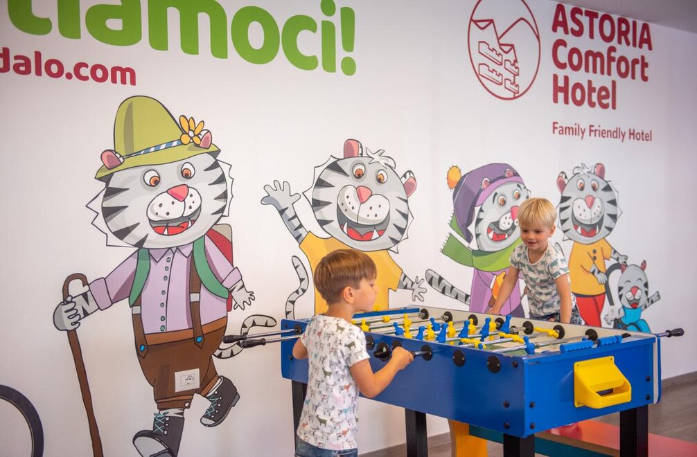 Здесь всё продумано для великолепного отдыха с детьми: 13 часов анимации с 4 лет; 7 часов заботы для детей от 1 до 3 лет; незабываемые летние и зимние экскурсии для всей семьи; услуги для детей в номерах и в ресторане; богатый полдник; детское меню Маскота Андалотто, которое можно наслаждаться за столом с аниматорами; просторная внутренняя игровая комната и сад. Есть даже внутренний водный район, с бассейном, оборудованным водными горками, джакузи и бассейном для плавания против течения.