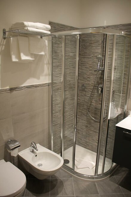 душ или ванна, число туалетов: 1, душ, биде, туалет, горячая / холодная вода, умывальник, душ, туалет, ванная комната, туалет