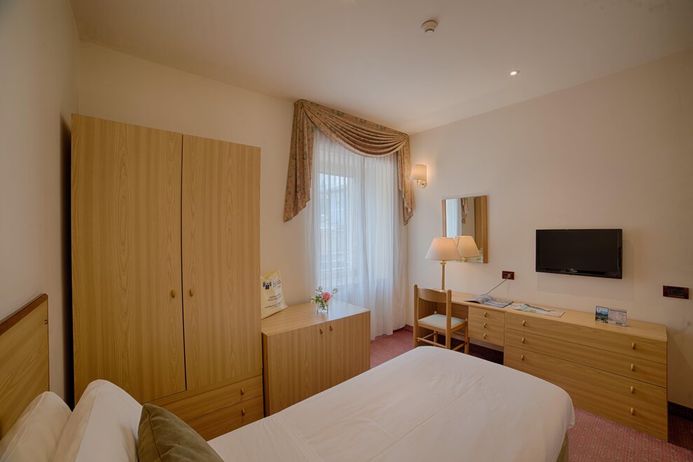 Comfortable room, completely renewed, minibar, kettle and air conditioning. Inclusive services: -free use of our heated swimming pool -free use of our "BellaVita" Wellness centre -Beauty Bag with sponge bath-wrap, sponge slippers and swimming pool towel -uncovered parking -free use of our fitness centre