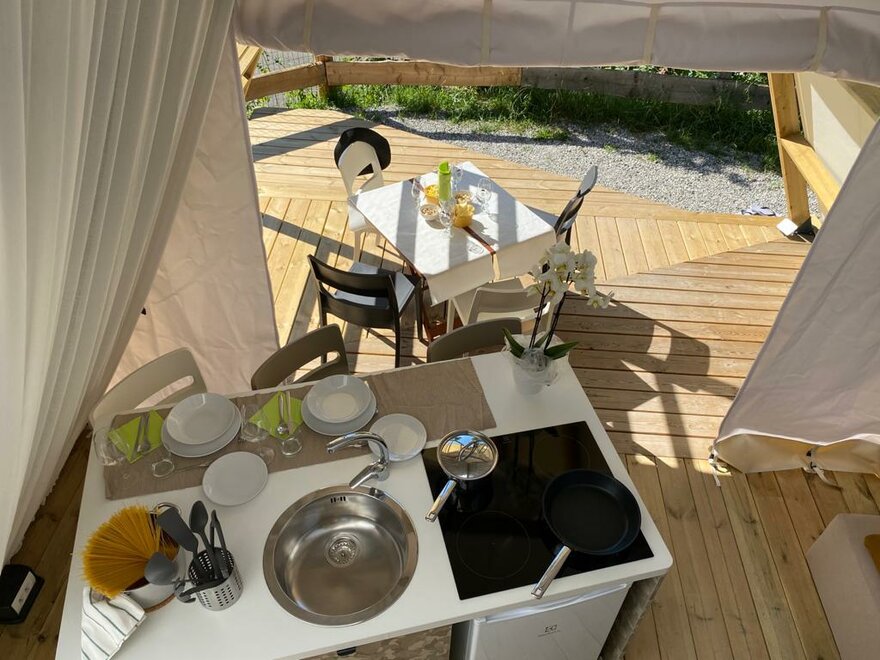 Dogs € 5,00 - dogs are allowed in pitches and mobile homes. They are not allowed in glamping tents.