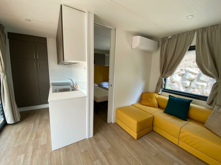 Идеальное решение для тех, кто ищет комфорт, услуги и дизайн и хочет провести отдых в гармонии с природой. Состоящий из двух спален, гостиной с кондиционером, ванной комнаты с душем и туалетом, полностью оборудованной кухни и верандой, наш NEXT гарантирует приятное пребывание максимум на 4 человек.Особенности номера / апартаментов