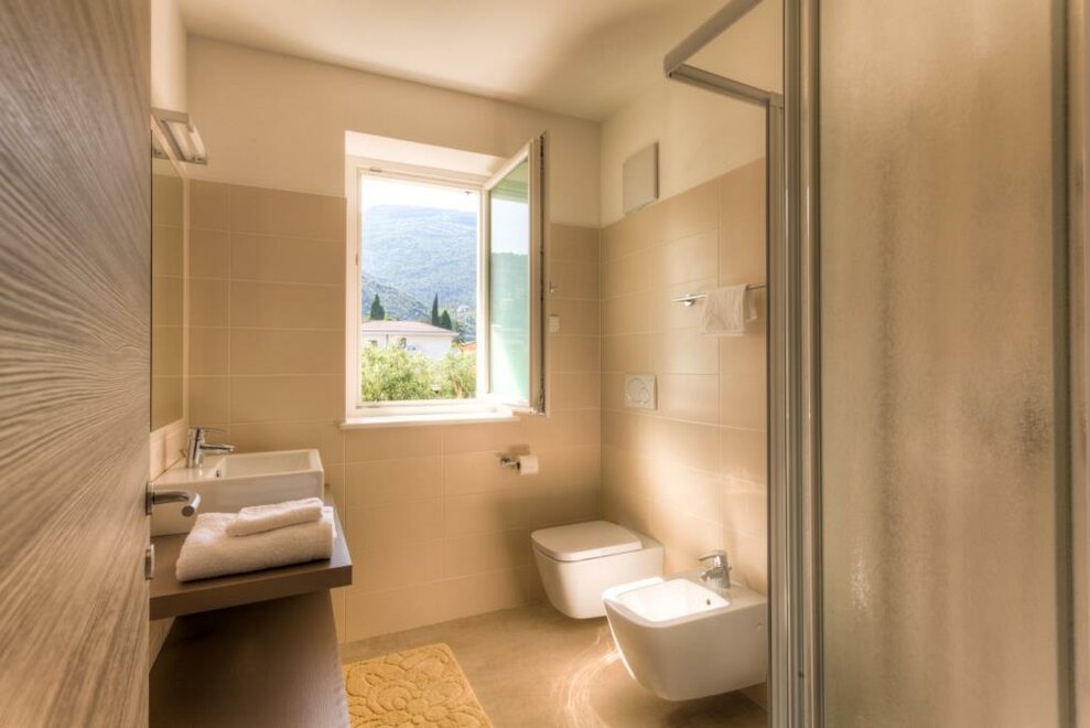 Апартаменты находятся на первом этаже нового здания, имеют террасу, выходящую на юг, с видом на озеро. Есть 3 обычных спальных места, а также возможность добавить детскую кроватку для ребенка до 3 лет. Это жилье подходит для семей из 3-х взрослых человек или до 4-х человек с маленьким ребенком. Также подходит для группы из 3-х взрослых человек и до 4-х, если они родственники.