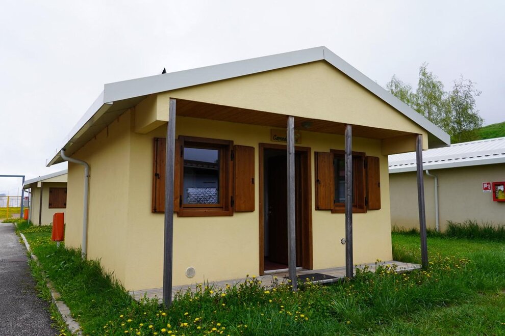 The Chalets of about 35 square meters were built in masonry and wood. It has a double bedroom, bedroom with bunk bed, living room with sofa bed and kitchen, bathroom with shower box, bidet, hairdryer and toilet. Outside it has a green lawn of about 20 square meters.