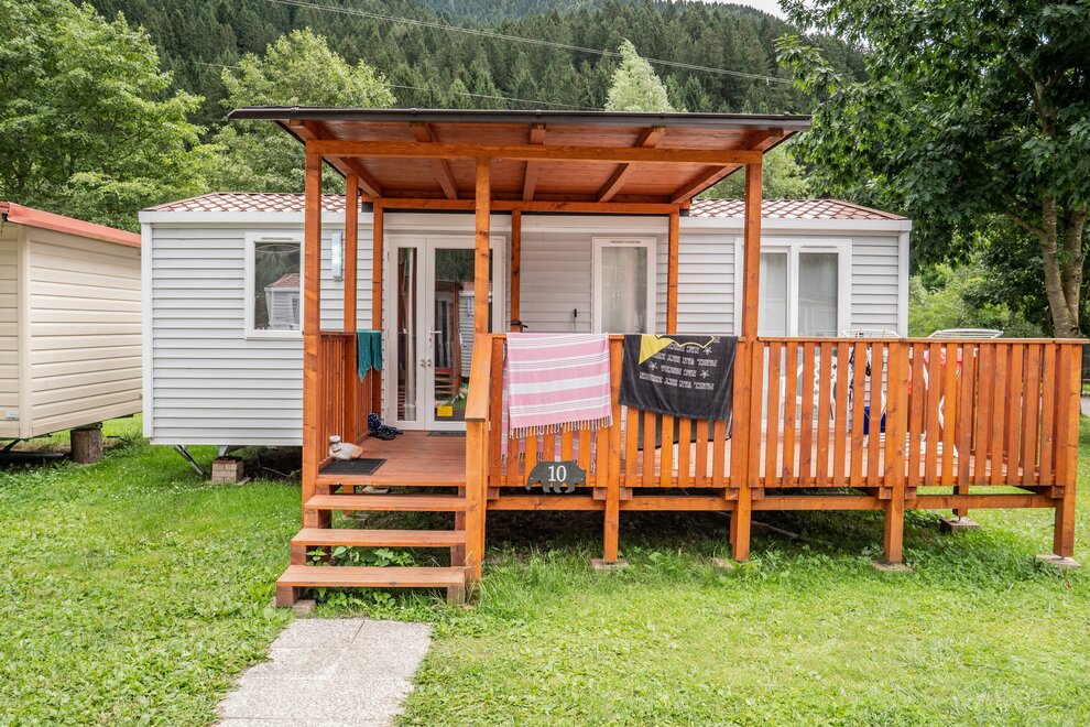 Наши мобильные дома идеально подходят для тех, кто хочет насладиться отдыхом на свежем воздухе, не отказываясь от комфорта.... Это модули размером 32 кв.м, которые могут разместить до 6 человек с отдельными спальнями. Они состоят из гостиной с телевизором и полностью оборудованным кухонным уголком, ванной комнатой с душем, раковиной и туалетом.