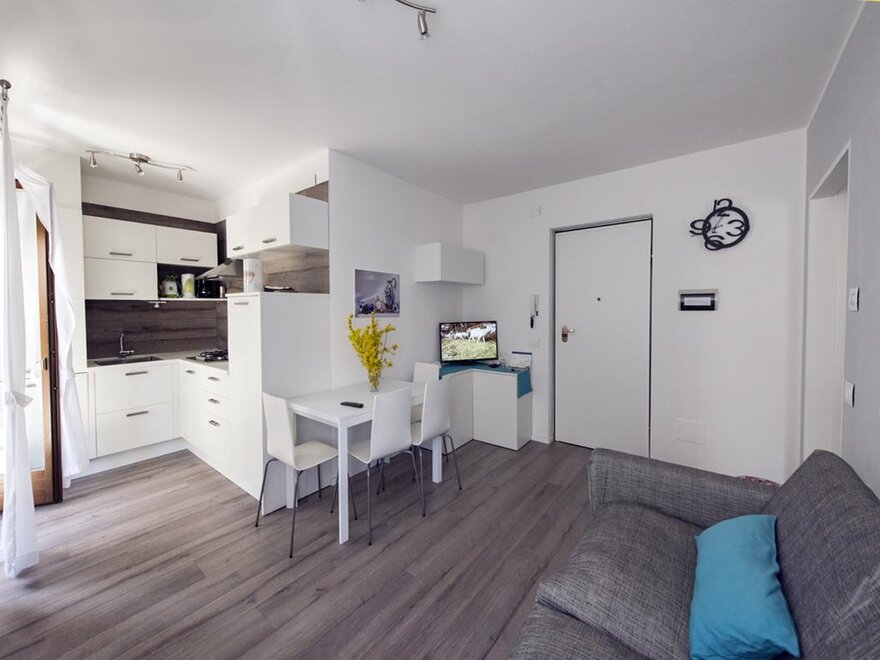 В Арко, в тихом жилом районе, недалеко от всех удобств (автобус, супермаркет, аптека, больница и т.д.), квартира состоит из спальни с телевизором, гостиной с кухней, оборудованной диваном-кроватью, телевизором с плоским экраном и спутниковым ТВ, кухня оснащена посудой, посудомоечной машиной, холодильником, духовкой, микроволновой печью, чайником, чистящими средствами.