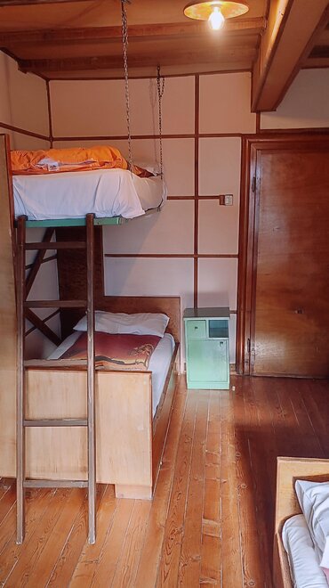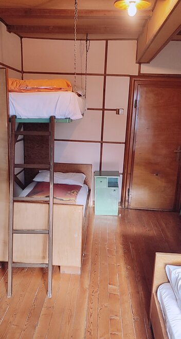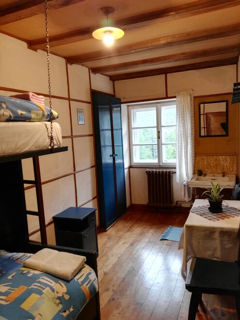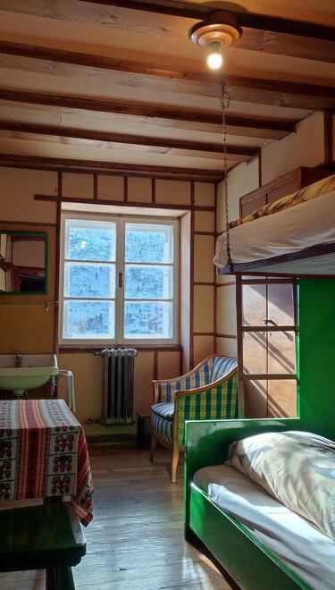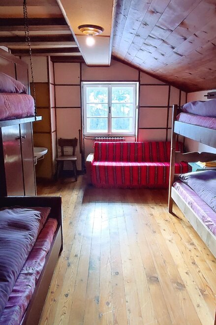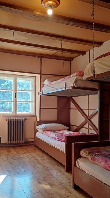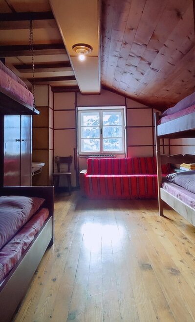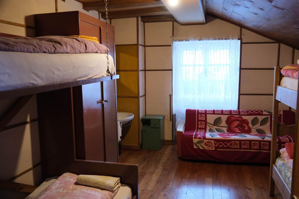 We have rooms and dormitories with bunk beds and shared bathroom, dinner and breakfast available. In room you have sheets, towels, duvet and it is privat, in cuccetta (dorm) there are sheets, duvet, you need your own sleeping liner and towel, the dorm is shared with other people.