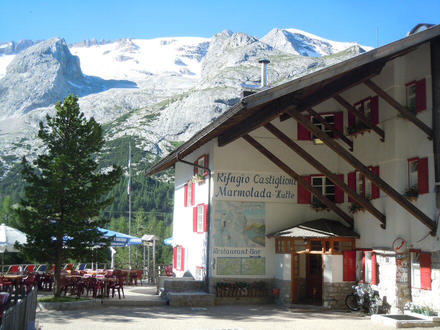 Excellent place for overnight stays for hikers and mountaineers who want to face the ascent to Punta Penia on the Marmolada or who travel along the Alta via 2 of the Dolomites or the Monaco - Venice, Traumpfad vom Munchen nach Venedig.