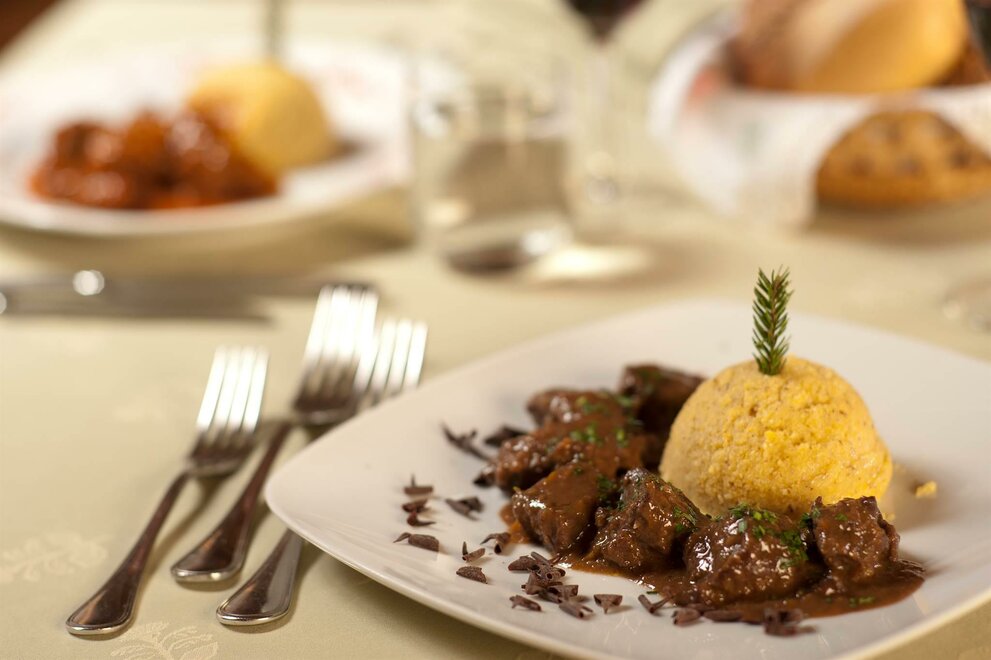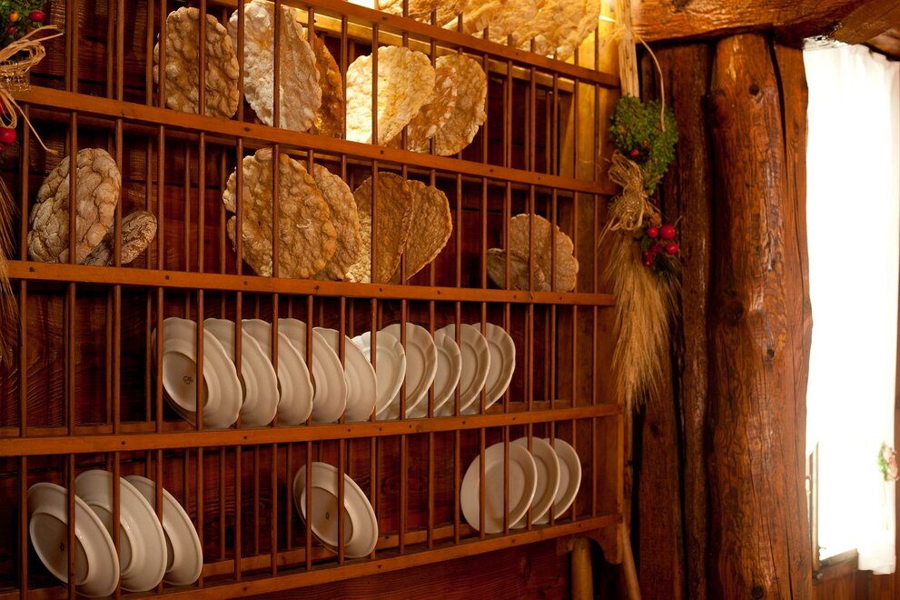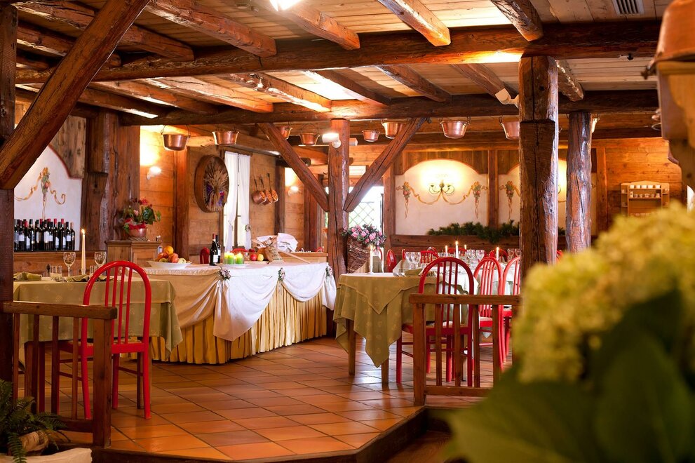 Характерный и живописный зал для завтраков, названный "Taverna delle Trisa", является идеальным фоном как для дегустации типичных трентинских блюд, так и для национальной кухни.