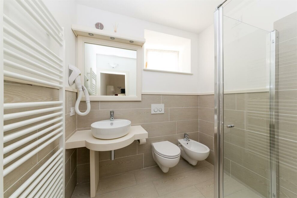 Family room with LCD screen TV, double ensuite with shower, shampoo/SOAP and hair dryer.Is perfect for 6 people. The room furnished with a rustic interior design is on two floors, with two double beds and a bunk bed. There is also a desk inside the room. Beautiful the view on the interior garden.