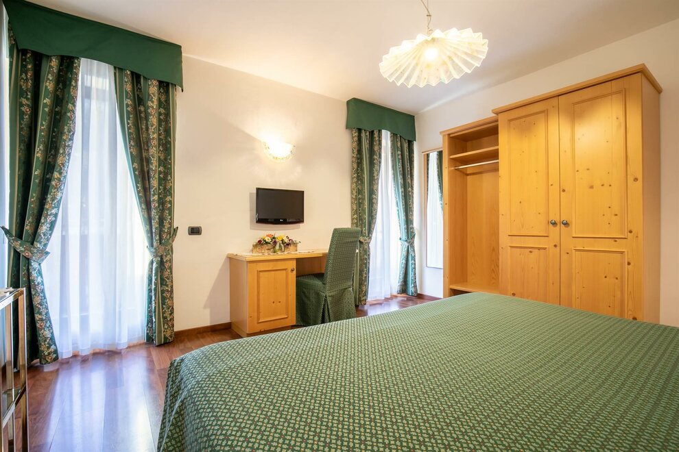 Простое и основное решение. Двухместные номера или номера с двумя отдельными кроватями площадью примерно 15-18 м2, оформленные в тирольском стиле. Номера простые по пространству, все с балконом, оборудованы телевизором с плоским экраном, бесплатным wi-fi, сейфом, телефоном, ванной комнатой с душем, полами из ПВХ или ковровым покрытием.