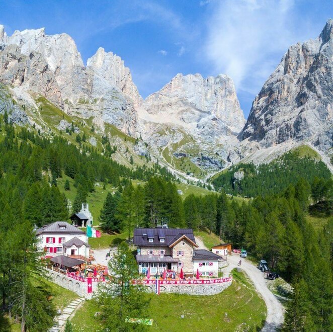 Находится менее чем в 6 км от деревни Альба ди Канадеи, до которой удобно добираться пешком по его бездорожью, становясь ежедневной целью для бесчисленных туристов, останавливающихся в окрестных долинах.