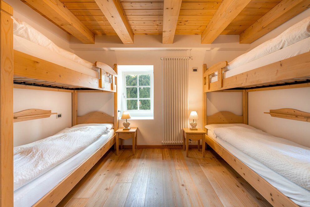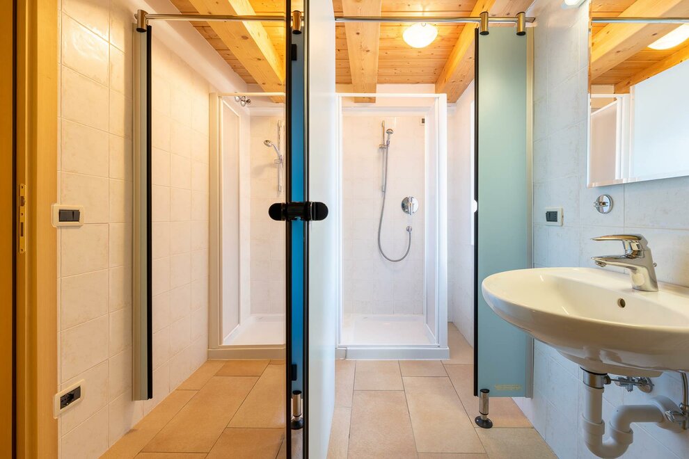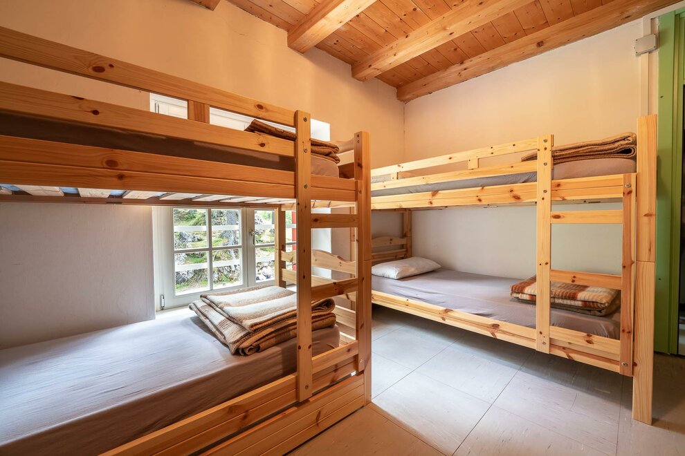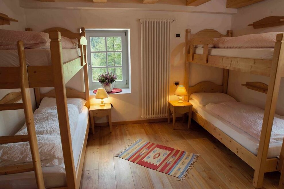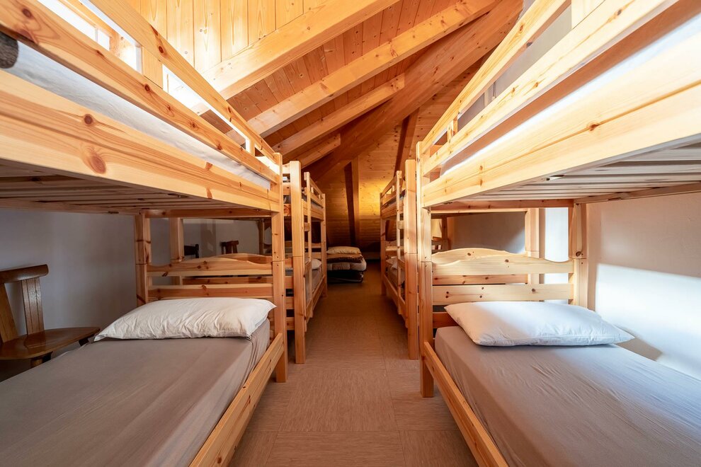 Общие номера с двухъярусными кроватями распределены на 3 этажа, с душевыми и санитарными удобствами на каждом этаже, душ - 2,00 евро за 10 минут горячей воды. Идеальное решение для групп или компаний, они могут разместить максимум 80 человек и состоят из деревянных двухъярусных кроватей на 6, 10, 12 или 15 мест.