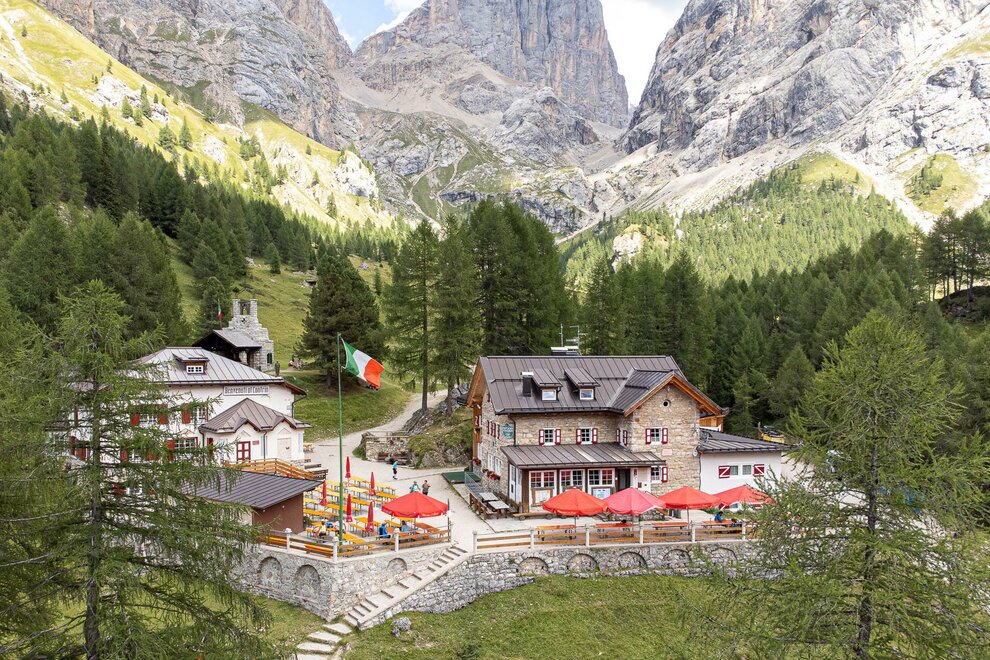 Многие знают его как Убежище альпинистов, но сто лет назад - в сентябре 1915 года, во время Великой войны - этот горный дом, построенный в конце девятнадцатого века Нюрнбергским альпийским союзом, был занят австрийской армией. Именно альпинисты разрушили здание с помощью миномета, и снова черные пера его открыли десять лет спустя, после того как получили его в подарок от государства и SAT и после реконструкции точно на том же месте. Сейчас Убежище Контрин - одно из самых уютных в Доломитах - все еще является опорной точкой для альпинистов, но это прежде всего летняя цель для многочисленных туристов, поднимающихся из долины Фасса, и отправная точка для тех, кто хочет пересечь вершины группы Мармолада. Открытие С середины июня по конец сентября Перед походом рекомендуется проверить фактическое открытие убежища, связавшись с управляющим. Маршруты Из Убежища можно подняться на вершину Мармолады (Пунта Пеня) вдоль via ferrata западного гребня (из Форчелла Мармолада альпинистским маршрутом - 4 часа пешком, сложность EEA). Через Пассо Омбретта можно добраться до Убежища Фальер, у подножия южной стены Мармолады (2,30 часа пешком, сложность EE). Другие возможные переходы - к Убежищу Фухиаде (поднимаясь по Пассо делле Чирелле - 3 часа пешком, сложность E). Для тех, кто не имеет больших амбиций, обязательно стоит пройтись от Убежища до Малги Контрин, расположенной неподалеку.