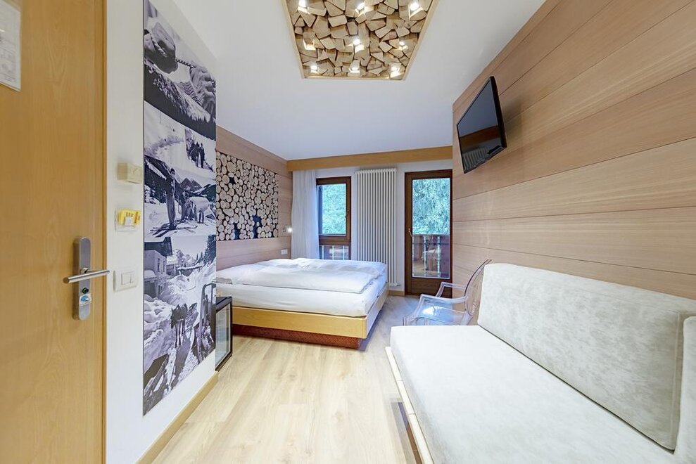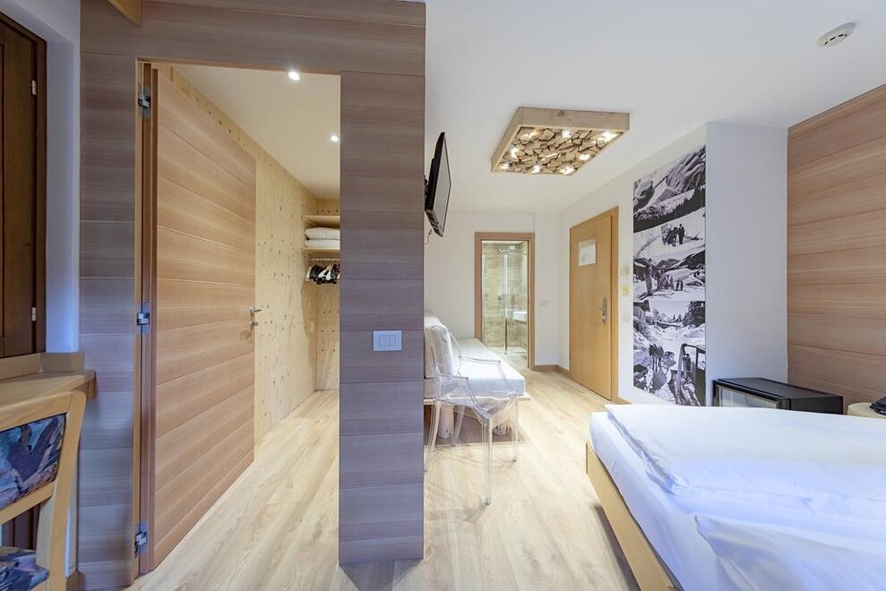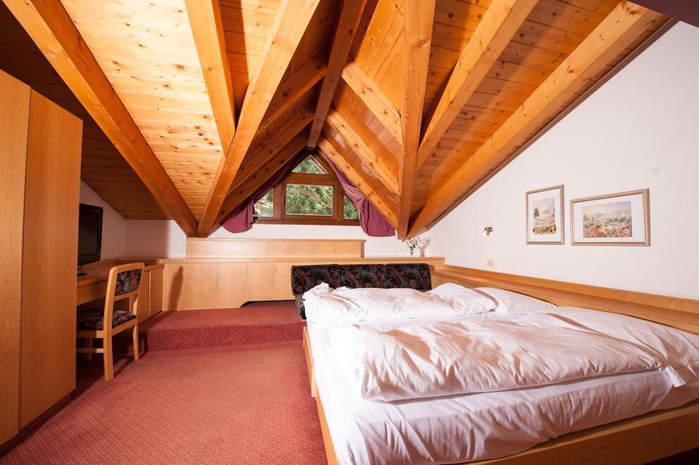 Отель расположен в тихом районе в центре деревни, очень близко к ресторанам и магазинам. Кабинный подъемник Прадаляго всего в 50 метрах с возвращением на лыжах. Парковка или гараж, солярий. Игровая комната, бар, гостиная, каминный зал, лифт. Все номера в комфортном альпийском стиле, оборудованы цветным телевизором и спутниковым телевидением, телефоном, ванной комнатой с феном, большая часть с балконом. Для требовательных семей ждут уютные люксы с мезонином.