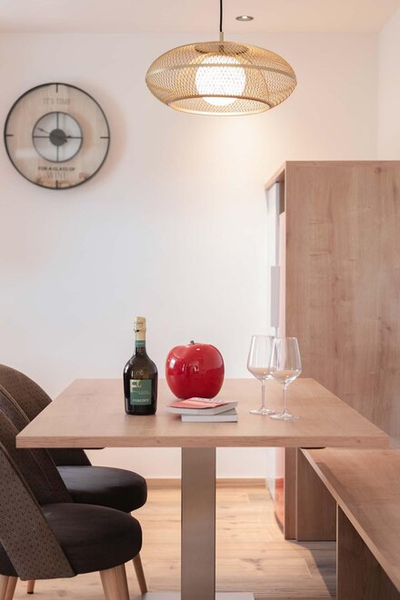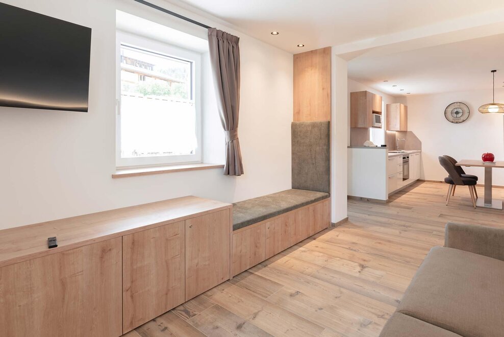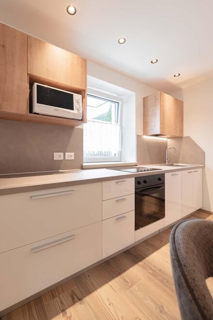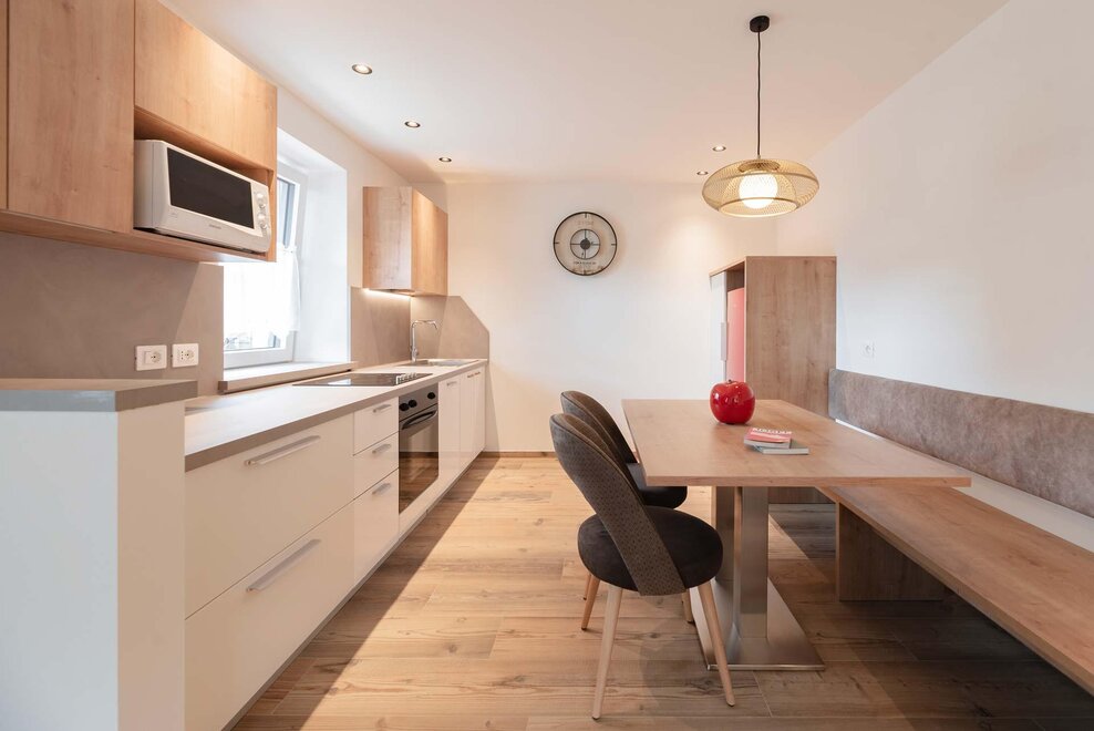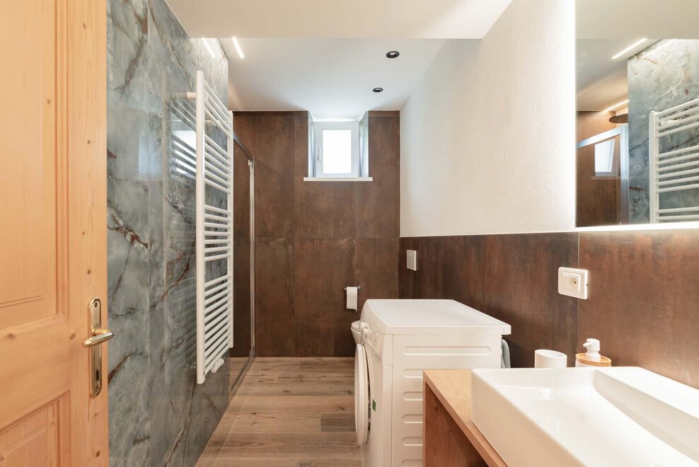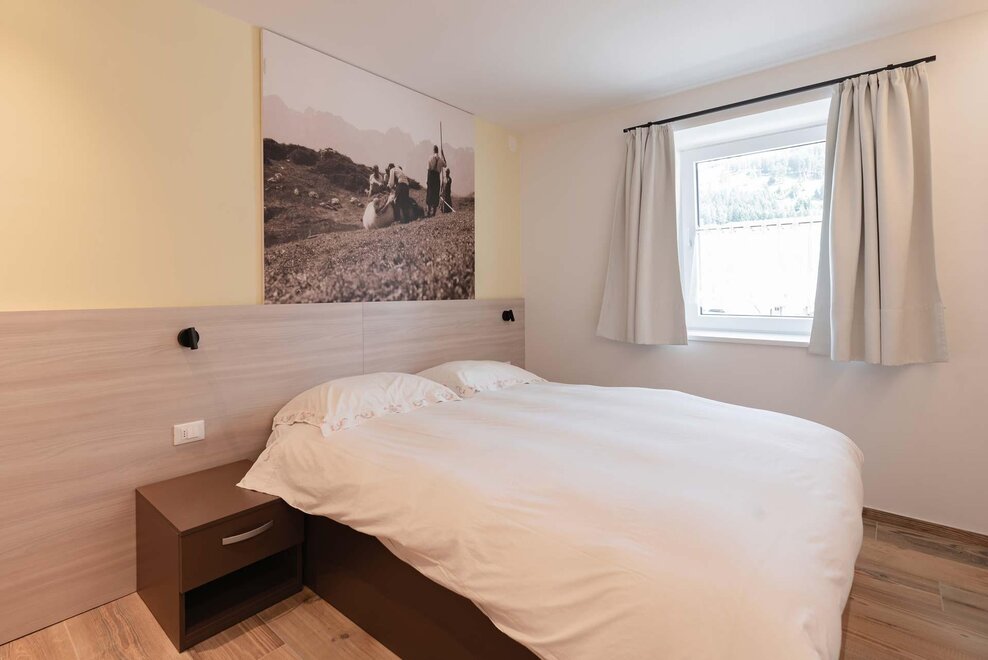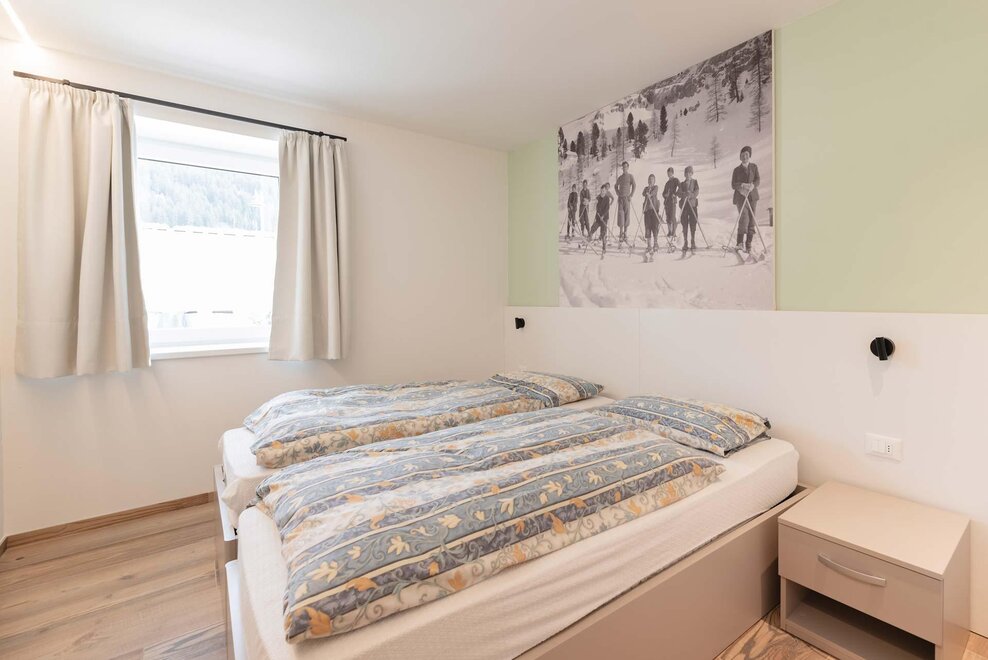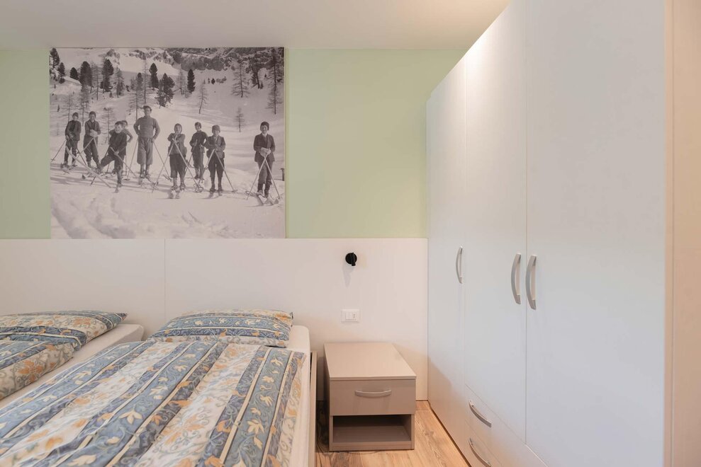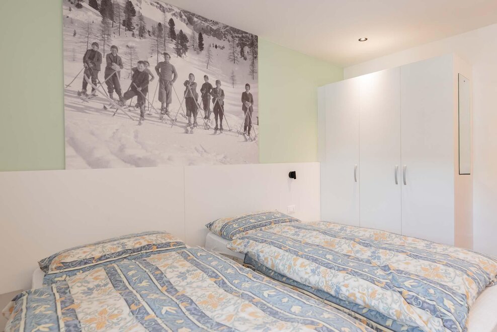 Квартира, расположенная на первом этаже, с отдельным входом из сада. Кухня полностью укомплектована, есть посудомоечная машина, большой холодильник с морозильником, микроволновая печь, духовка и электроплита. Гостиная, оформленная в типичном горном стиле, теплая и уютная, в то время как в спальнях, более современных, акцент сделан на большие изображения местной истории. В одной ванной есть ванна, в другой – душ. Гараж доступен для хранения велосипедов или другого громоздкого багажа.