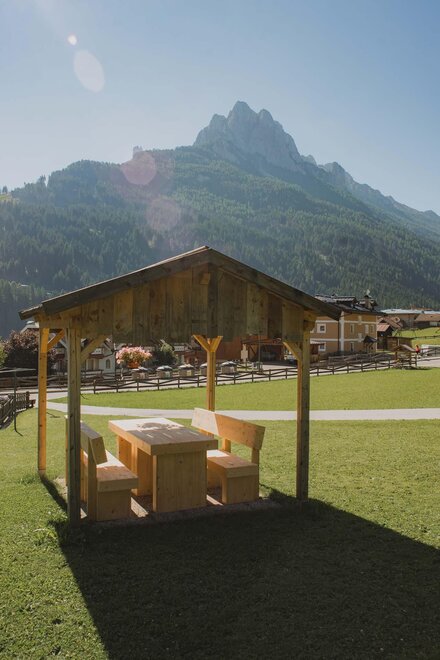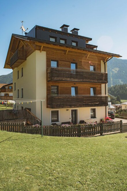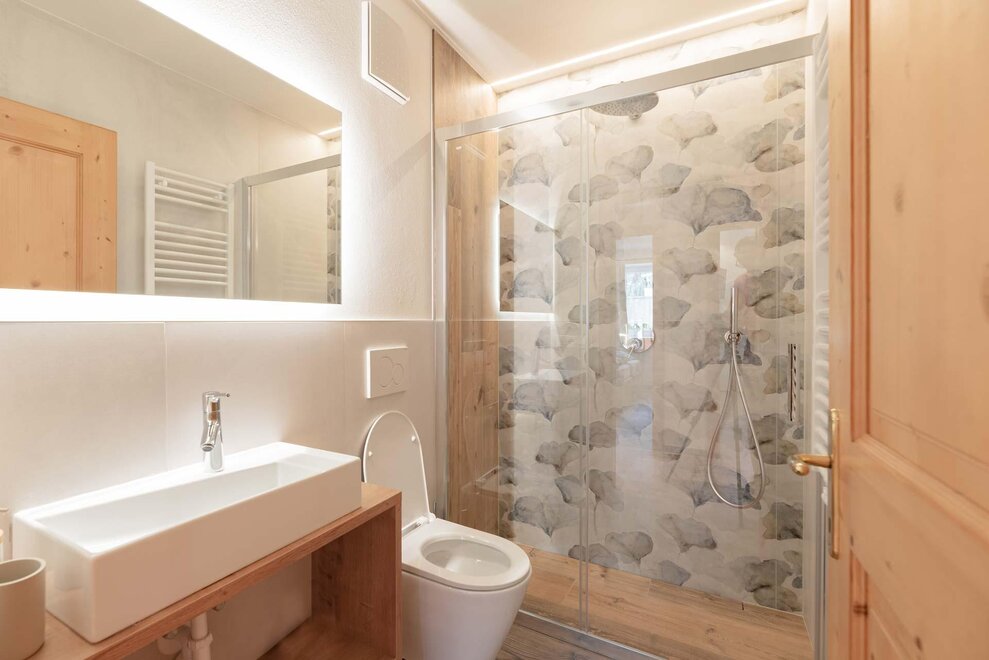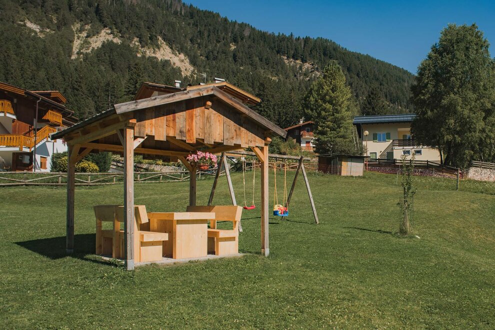 Дом находится в Позза-ди-Фасса, в солнечном, панорамном и тихом месте. Он окружен зеленым частным участком, садом площадью 400 м² вокруг, с беседкой, зоной для отдыха, качелями. Перед входом также есть небольшой уголок для наслаждения окружающей обстановкой, возможно, за чашечкой кофе или аперитивом. Перед окнами возвышаются самые известные горы: Чима 11, Чима 12, Буффауре, Сассолунг, создавая уникальный вид. В нескольких шагах от дома находится прогулочная дорожка "Сора и Пре", которая позволяет добраться до соседних деревень Виг и Пера пешком или на велосипеде по живописному маршруту. Также пешеходно-velосипедная дорожка вдоль реки Авизио доступна пешком от дома, в 5 минутах. QC Terme в 600 метрах. Центр находится в 700 метрах, но бары и магазины уже в 100 метрах. Наши гости получают карту Вал ди Фасса.