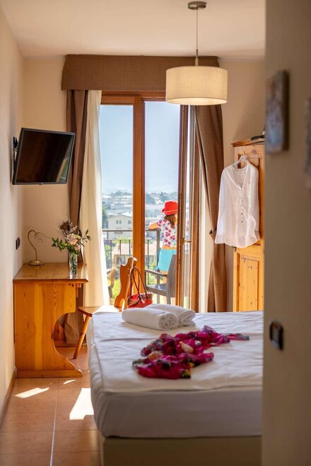 СЕМЕЙНЫЙ НОМЕР 25 М² КЛАССИЧЕСКИЙ: уютный и просторный вrustico, идеальный для семей из 3-4 человек, солнечный с балконом и панорамным видом, оснащен ванной- Dusche, кондиционером, Tv-Sat и телефоном, обслуживается лифтом.