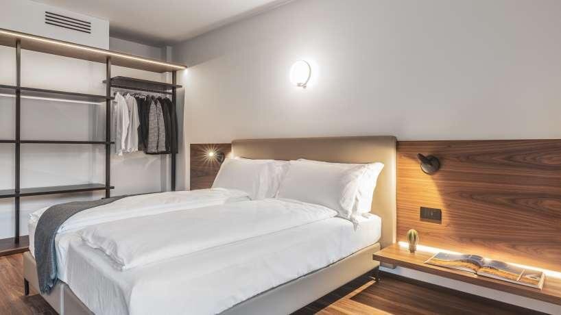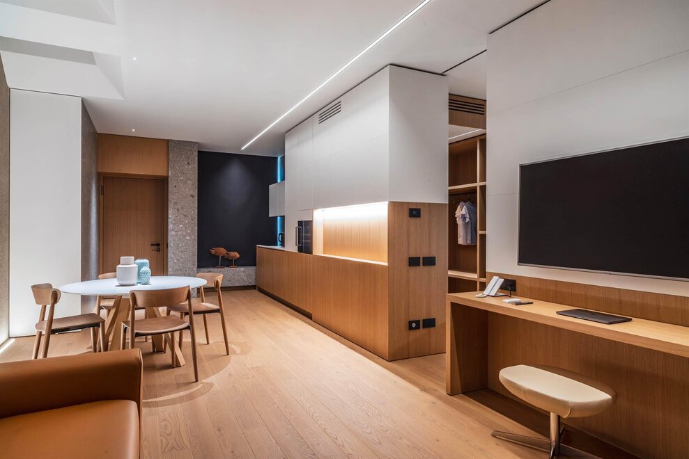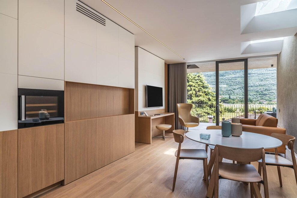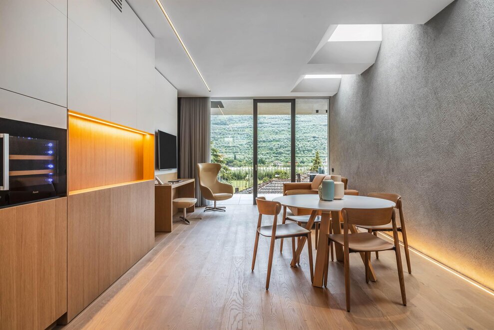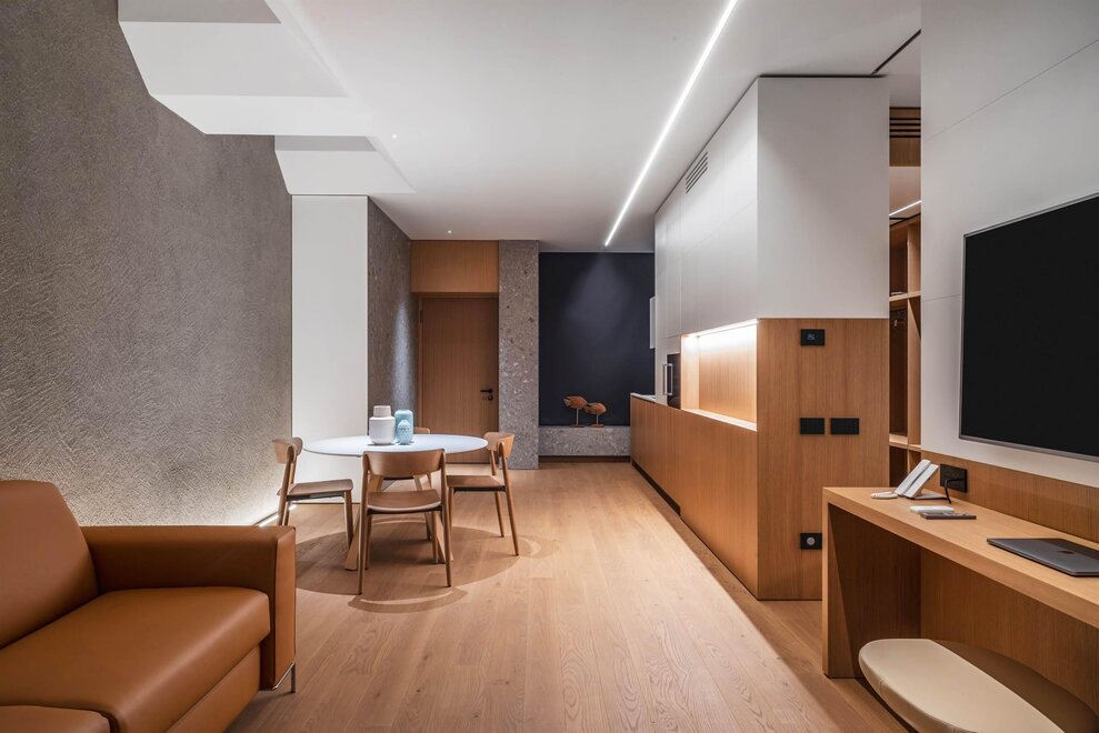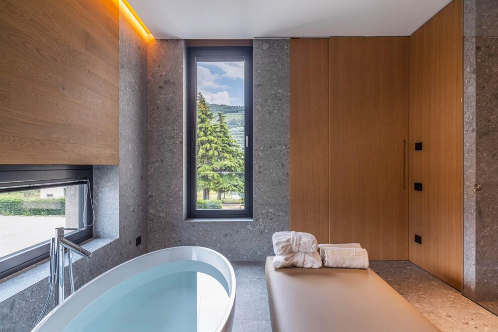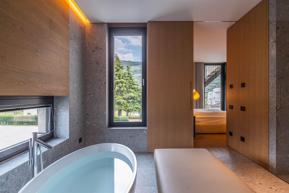 Классические элементы, такие как текстура здания, древние внешние стены, продуманные чередования света и тени объединяются с точными дизайнерскими решениями для эксклюзивного опыта проживания, где традиция гарды и "взгляд" на отдых становятся неразрывным союзом.