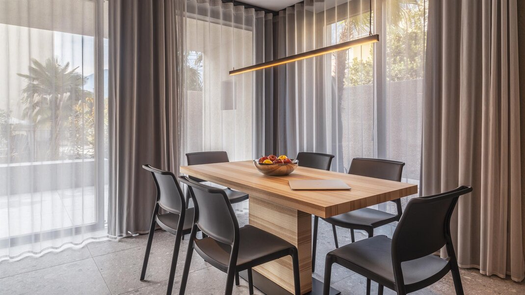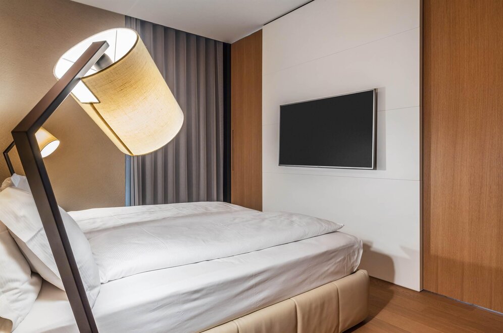 В элегантном минималистичном дизайне прослеживается гармоничная геометрия, придающая отделке нотку класса. Все это подчеркивается великолепными услугами и просторной ванной комнатой с тропическим душем.
