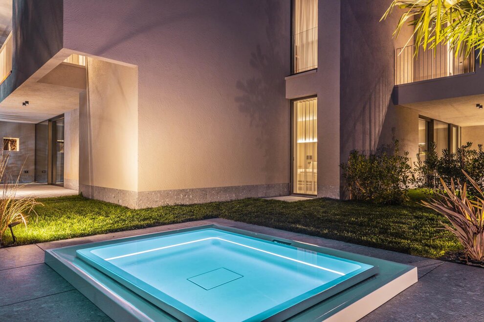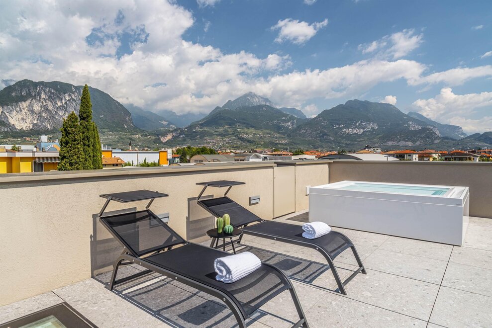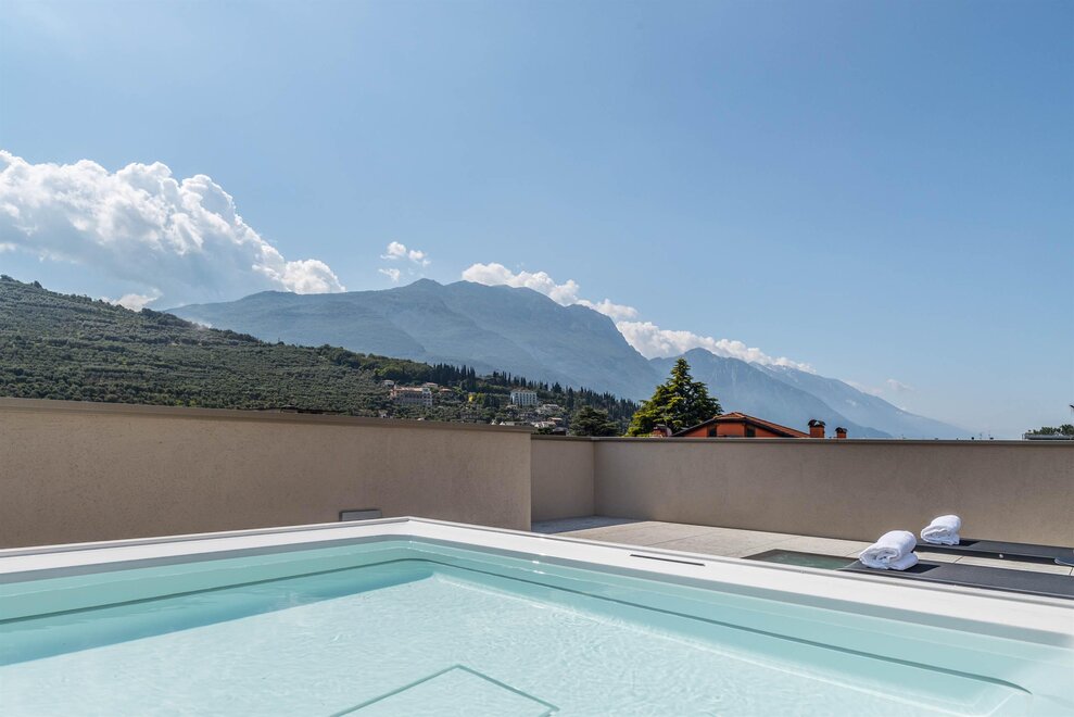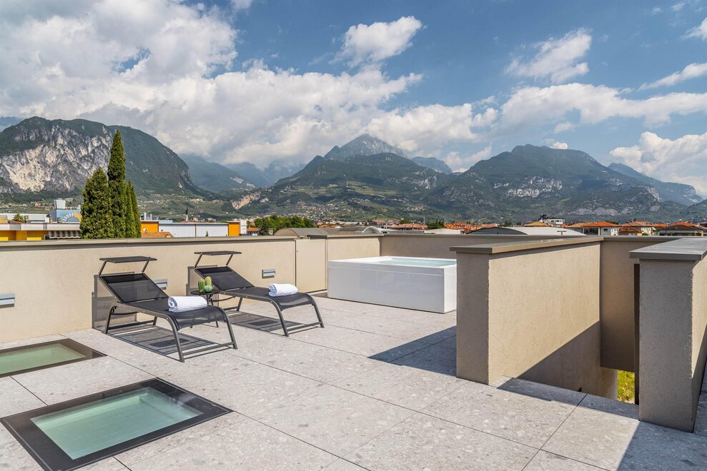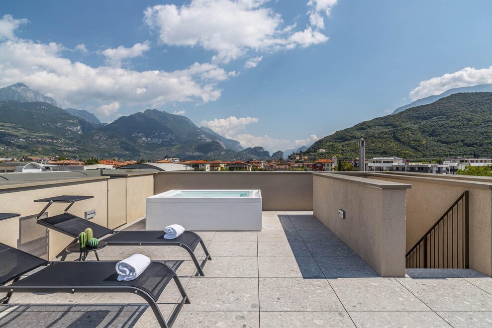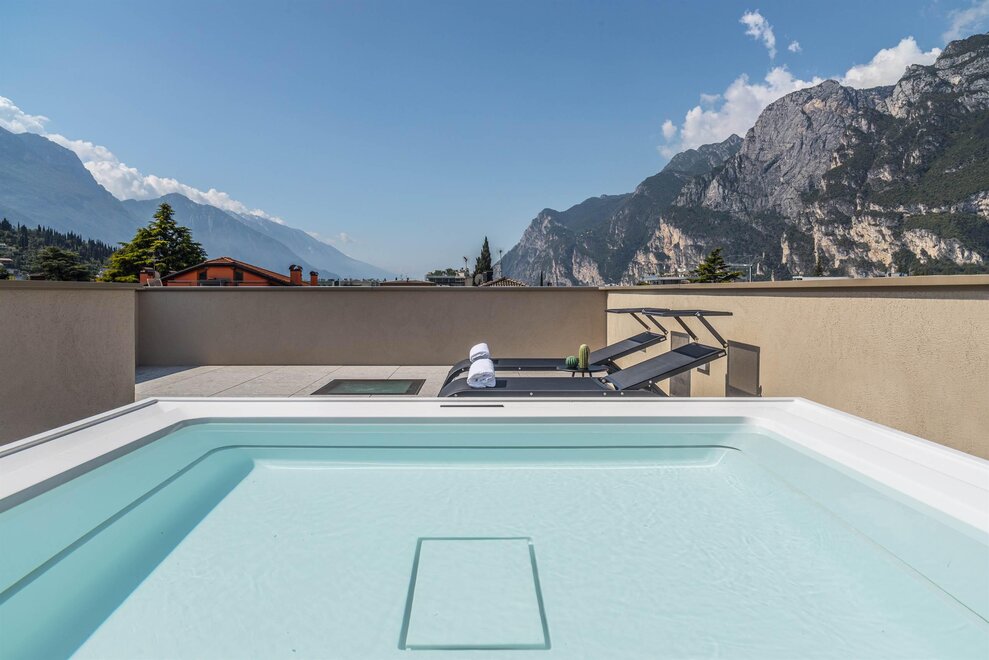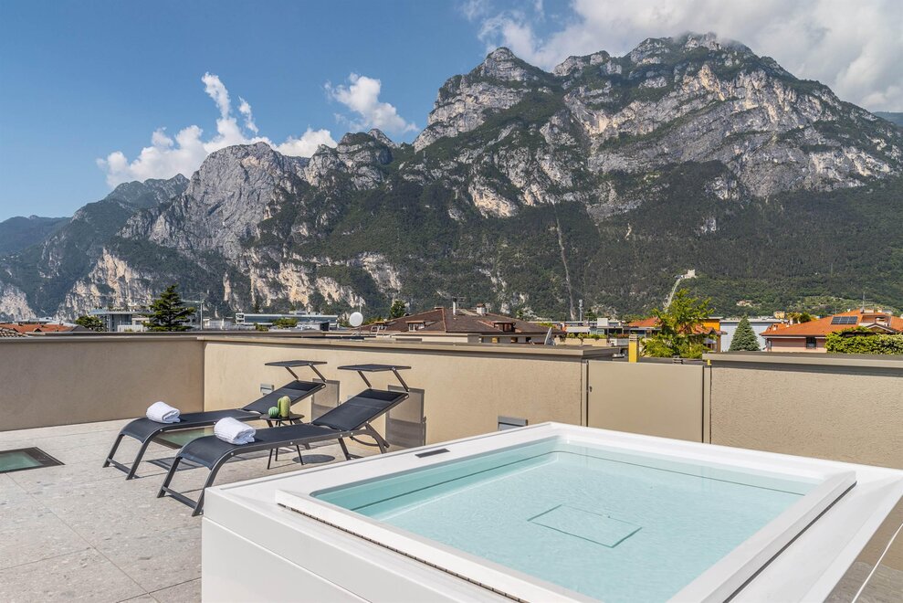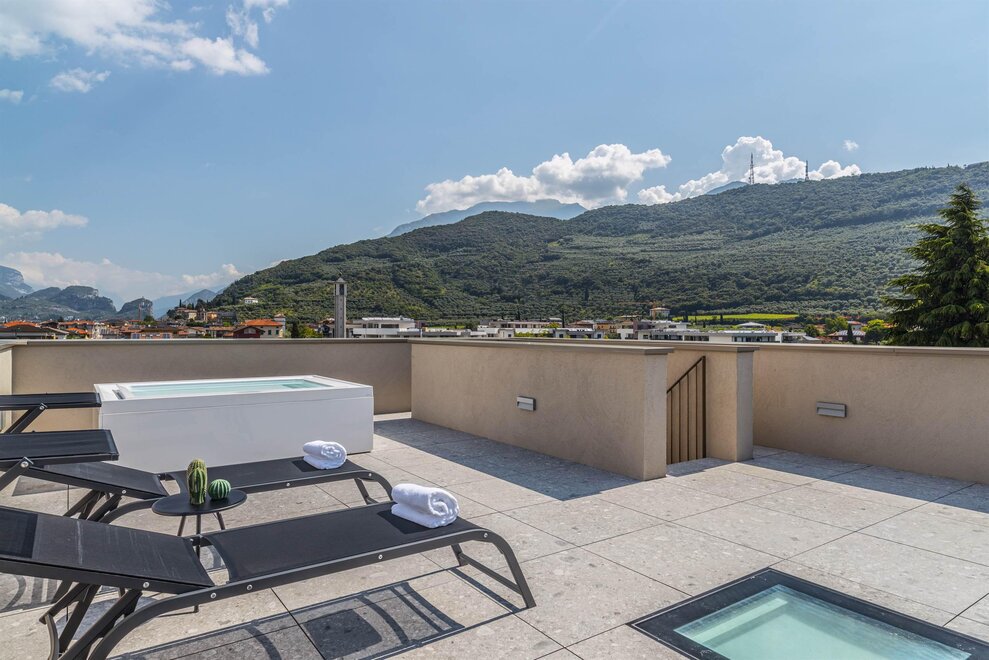 Чтобы завершить шедевр, впечатляющая терраса с эксклюзивным доступом к крытому солярию, которая располагает мини-бассейном с водопадом Treesse Fusion с гидромассажем и шезлонгами. Погрузившись в сладкие объятия теплой воды, вы сможете насладиться видом на 360° на незабываемую горную панораму Рива дель Гарда.