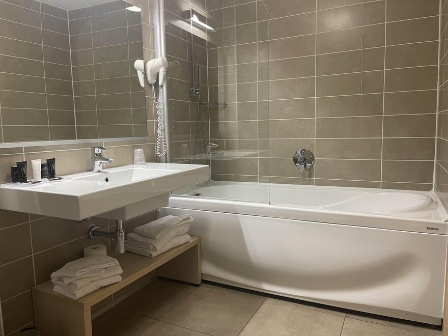 В номере предоставляется Wellness-сумка с 2 халатами и полотенцами для бассейна для всех жильцов.