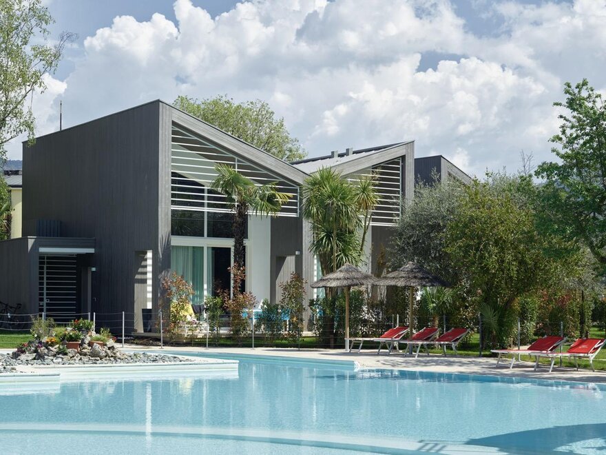 Коттеджи представляют собой автономные и независимые дома, состоящие из: на первом этаже зона отдыха с двумя большими односпальными кроватями (100x200 см) и двухъярусной кроватью (2 матраса 80x190 см), ванная комната с душем, гостиная с кухонным уголком и гардеробом - Второй этаж: спальня с большой двуспальной кроватью, ванная комната с душем - Внешнее пространство: частная веранда с удобными шезлонгами и садовым столом - Хранение велосипедов - Открытая парковка на территории и выделенный гараж. Все коттеджи оснащены: - 3 спутниковыми телевизорами с Sky - Постельным, ванной и кухонным бельем - Кухней, оборудованной посудомоечной машиной, духовым шкафом, холодильником и морозильником, индукционной плитой, микроволновой печью, кастрюлями и посудой - Чайником и кофеваркой - Стиральной машиной - Бесплатным Wi-Fi - Набором приветствий (2 капсулы кофе, 2 таблетки для стиральной и посудомоечной машин, 2 рулона туалетной бумаги) Не включают: Питание Продукты питания (кофе, сахар и т.д.) Моющие средства или средства для ванной