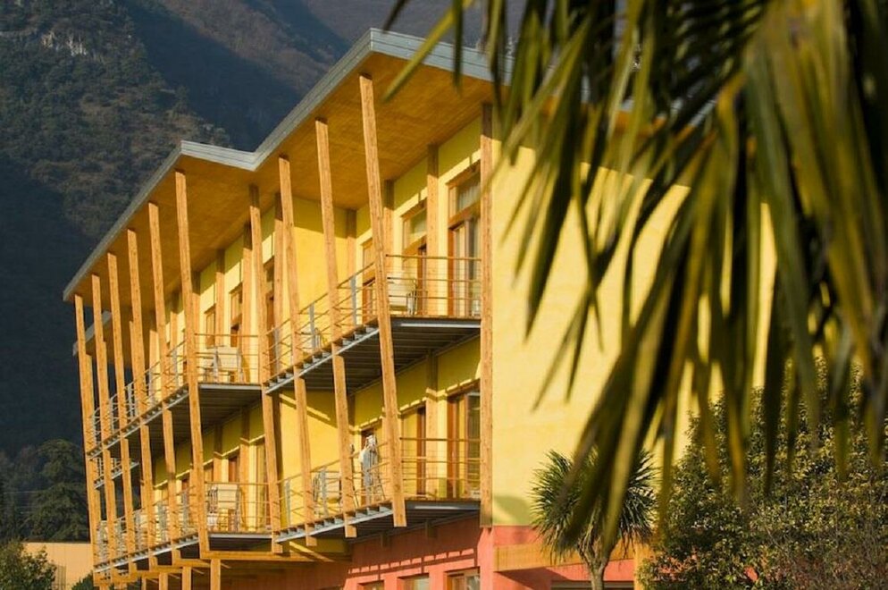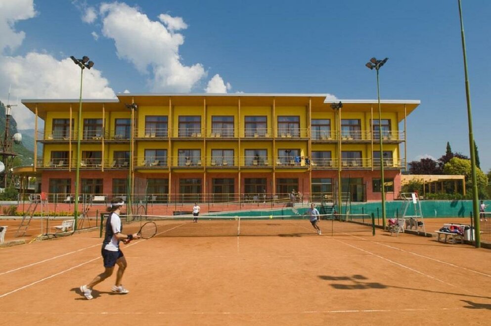 СПОРТ И ДОСУГ ОТЕЛЬ Новый климатический отель, построенный согласно критериям экостроительства, расположен недалеко от центра Рива дель Гарда в спортивном комплексе, утопающем в зелени, с бассейнами, теннисными кортами, сквошем, фитнес-клубом и прокатом МТБ. Отель располагает 40 комфортабельными номерами с двумя санузлами, балконом, LCD спутниковым телевидением, мини-баром и бесплатным Wi-Fi.