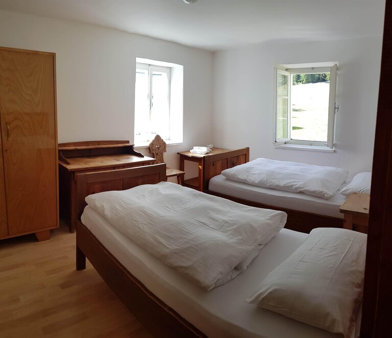 Камереты в альпийском стиле с простым, но достаточным интерьером, позволяющим насладиться особым отдыхом, теплые одеяла позволят вам отдохнуть и подготовиться к новому дню, полному эмоций. Они укомплектованы постельным бельем и раковиной, в коридоре находятся туалеты и душевые, общие с другими гостями.