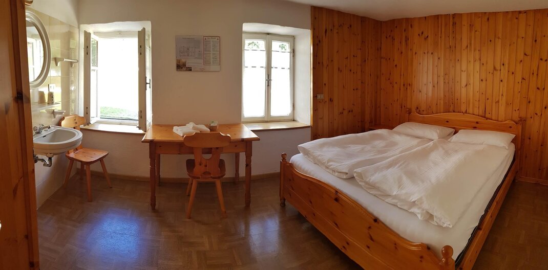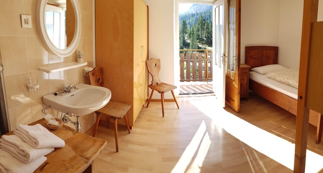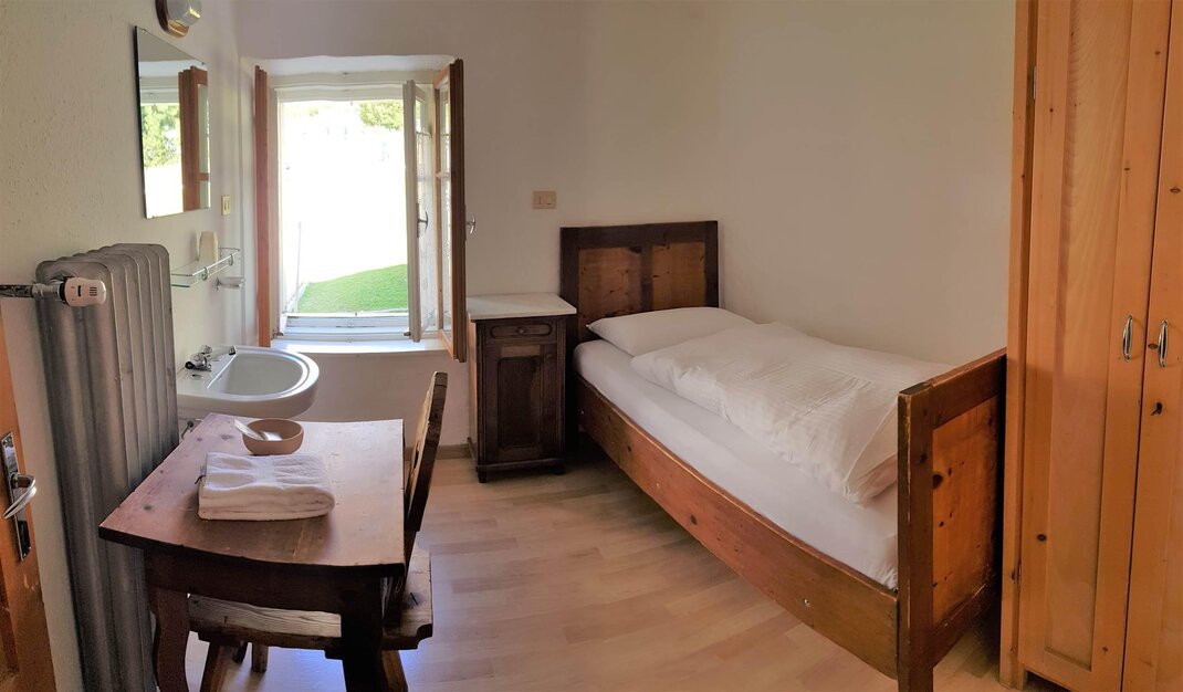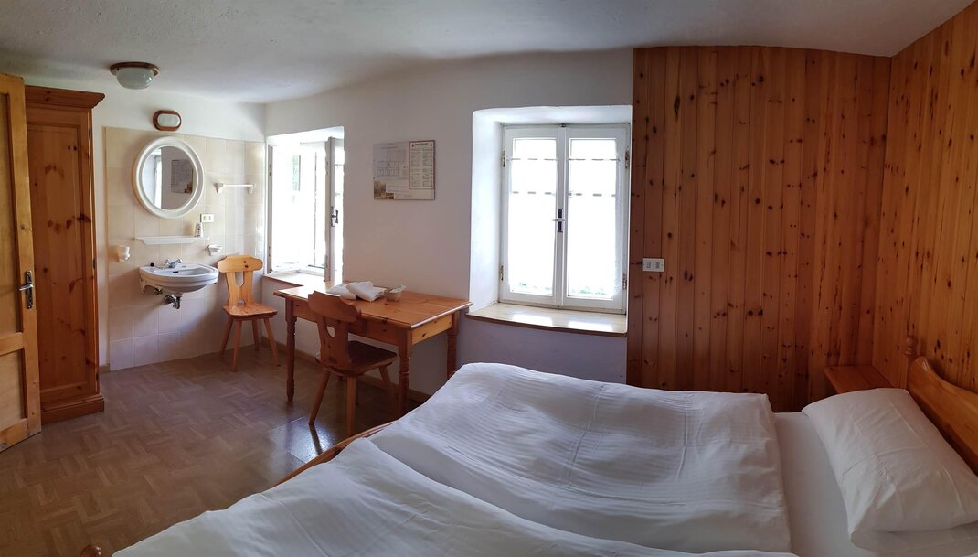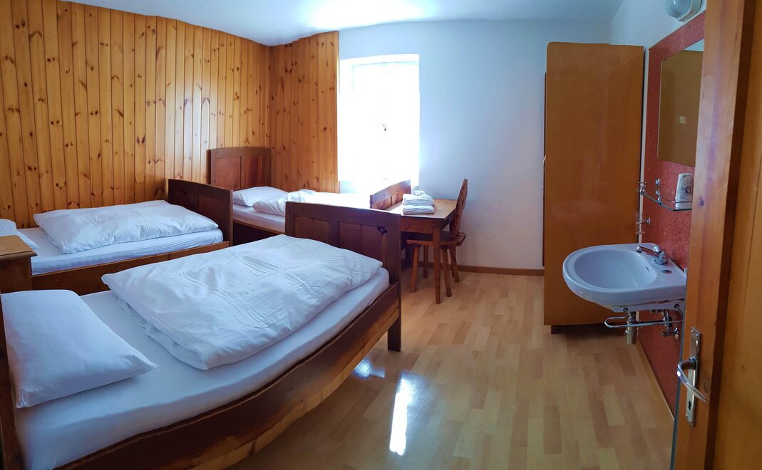 Номера в альпийском стиле с простым, но достаточным интерьером, чтобы наслаждаться особенным отдыхом, теплые одеяла позволяют отдохнуть и подготовиться к новому дню, полному эмоций. Они укомплектованы постельным бельем и раковиной, в коридоре находятся туалеты и душевые, общие с другими гостями.
