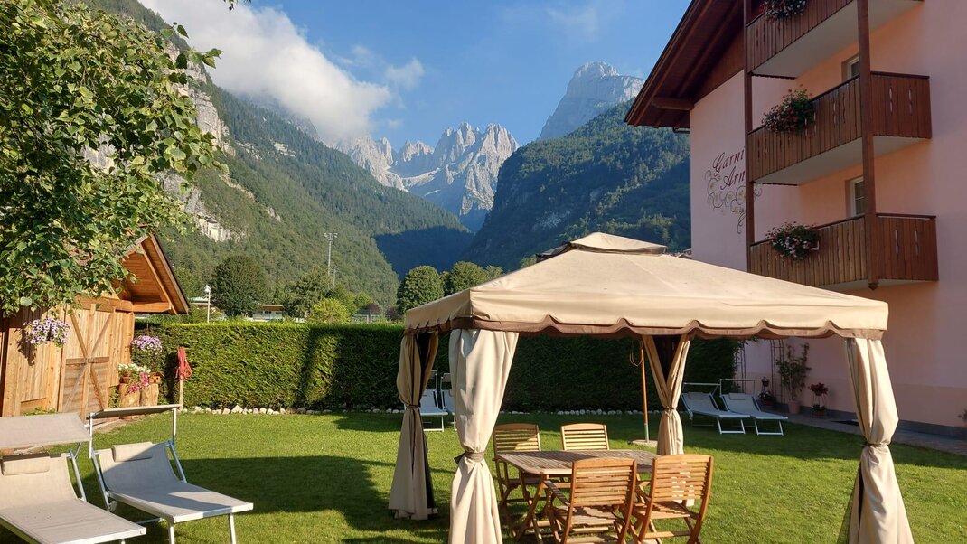 - Третья кровать для взрослых: 25%.Среди услуг и удобств, которые предоставил отель Garnì Arnica, вы найдете: ТВ, сейф, панорамный балкон, ванную комнату с душем, фен, набор туалетных принадлежностей, Wi-Fi, зеленую зону для отдыха, а также "Paganella Guest Card", которая позволяет пользоваться множеством услуг, объектов и спортивных сооружений по сниженной цене.