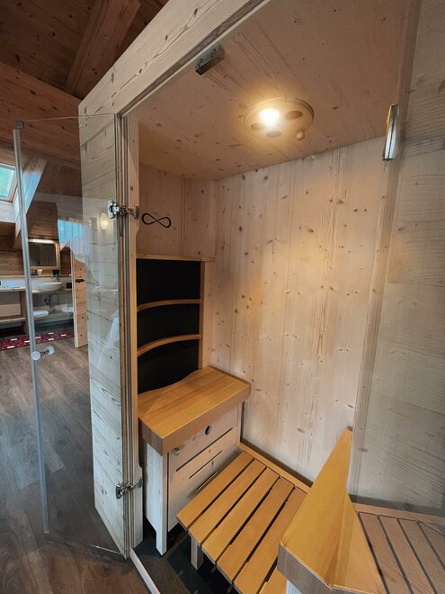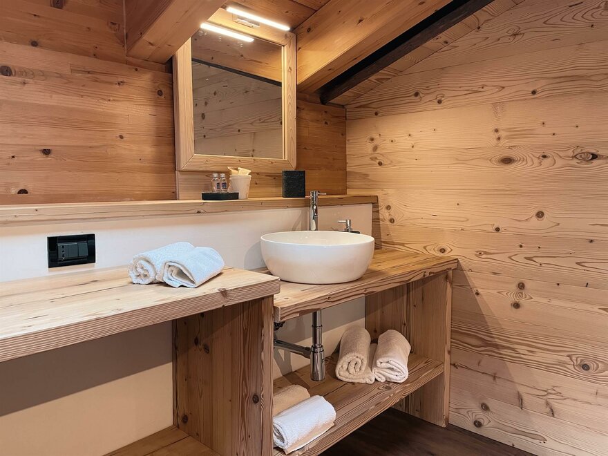 Обставлена антикварным деревом из сосны и елового дерева, добытым из старой трентинской фермы.