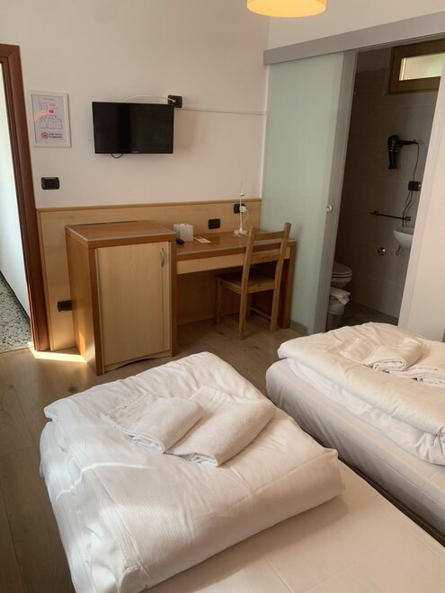 Трехместный номер идеально подходит для семей, друзей или коллег, желающих комфортного и просторного проживания. В номере есть три отдельных кровати, которые можно объединить с помощью топпера, чтобы создать одну двуспальную и одну односпальную кровать, обеспечивая удобный и расслабляющий отдых. Более того, поскольку номер также продается как двухместный, третья кровать закрыта, чтобы выглядеть как диван, поддерживая более интимную и уютную атмосферу. Каждый номер оснащен собственной ванной комнатой, мини-баром, смарт-ТВ с диагональю 32 дюйма и набором туалетных принадлежностей, чтобы сделать проживание еще более практичным и комфортным. Кроме того, все номера укомплектованы чистым постельным бельем как для кровати, так и для ванной, чтобы обеспечить максимальный комфорт.