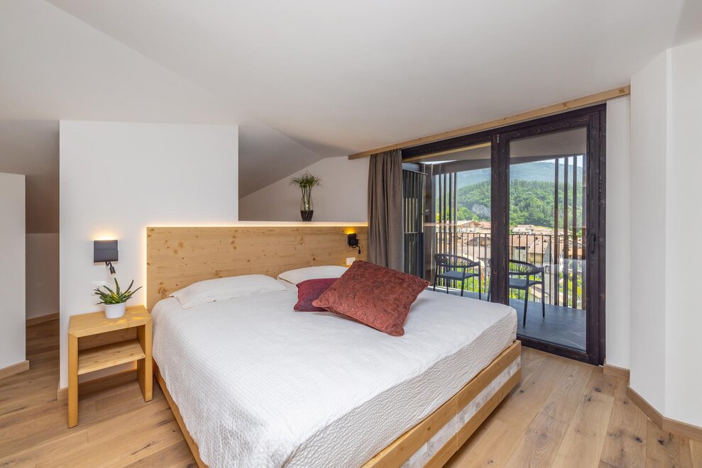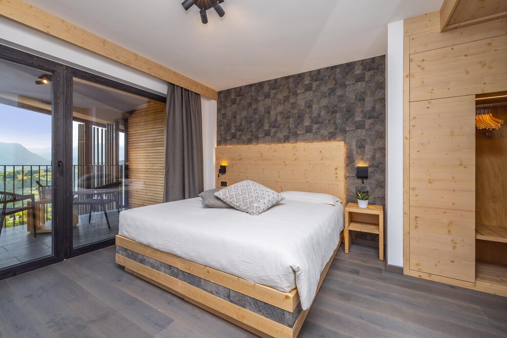 Совершенно новая комната, оформленная из натуральных материалов, пол из дуба и просторный балкон с великолепным панорамным видом.