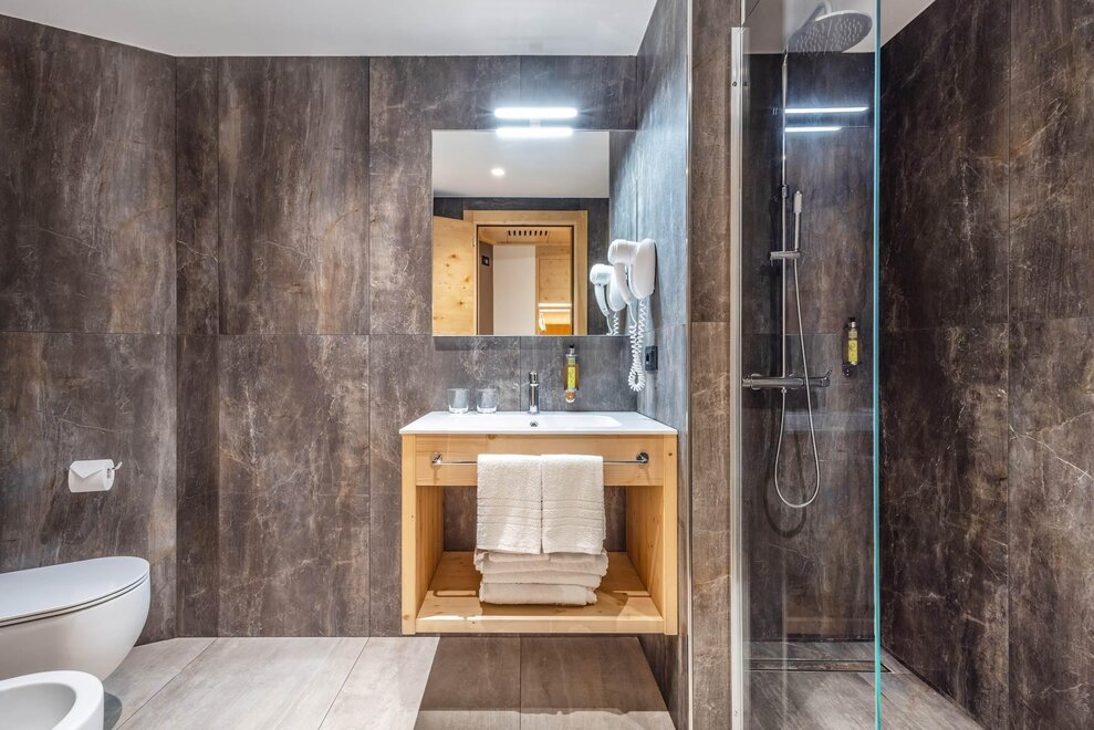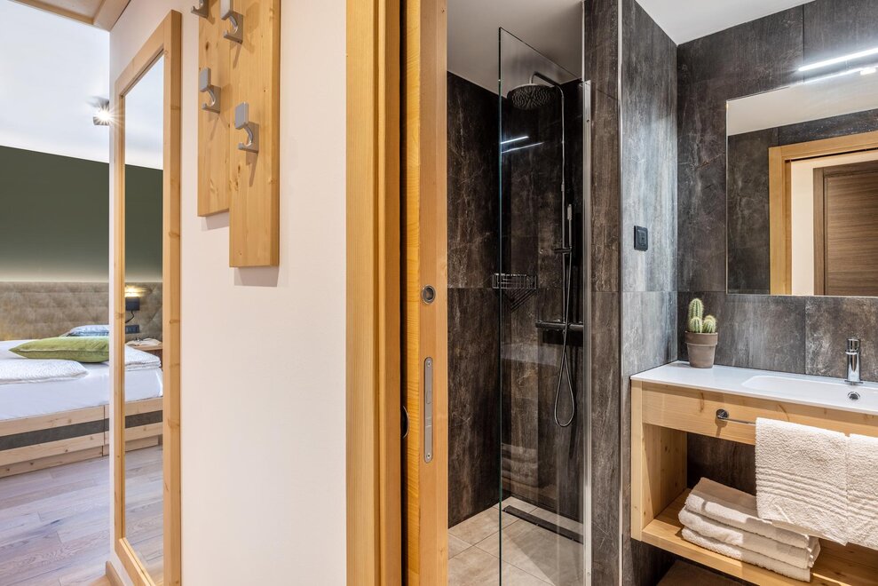 ample space in the shower and bathroom, accessible walk-in shower