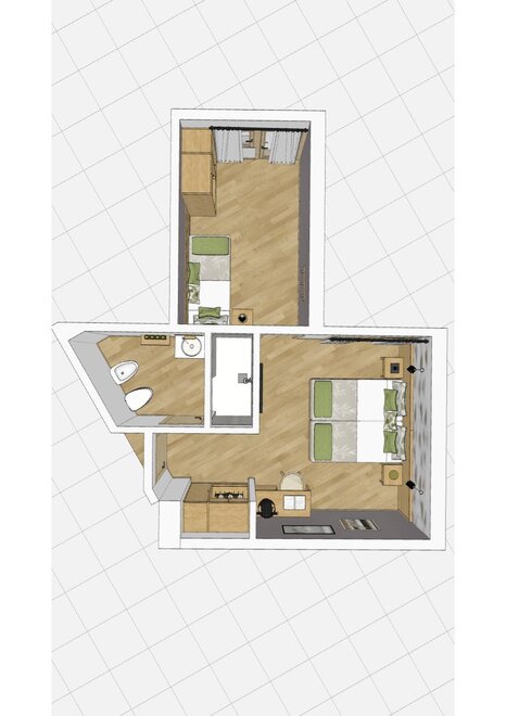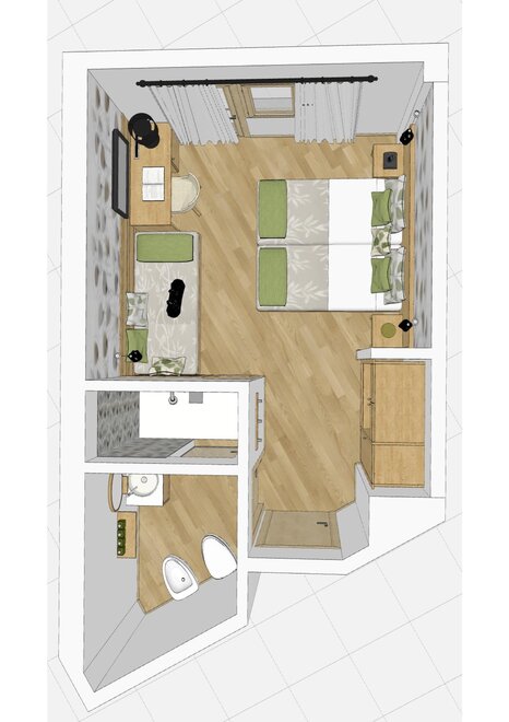 Размер 16 m² Размещение 1 - 3 Взрослые , 0 - 2 дети Номера 1 Спальни 1 Подробнее о номере