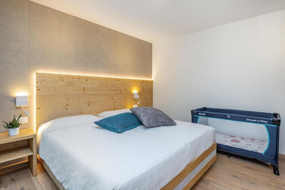 - спальня для родителей с комфортабельной двуспальной кроватью King-size 180x200 и собственным балконом без панорамного вида