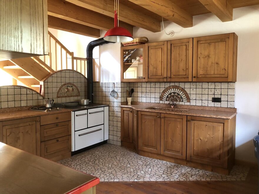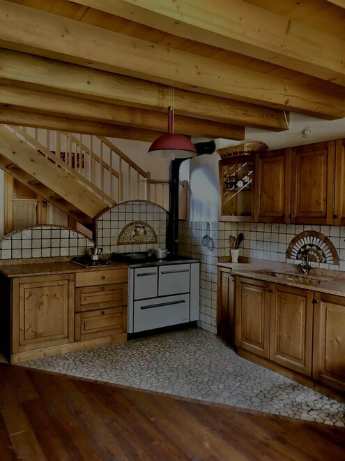 Наше хозяйство предлагает стильную с деревянной отделкой квартиру. Она расположена на двух уровнях: кухня/гостиная и ванная комната на первом этаже, мансарда с спальней (4 кровати).