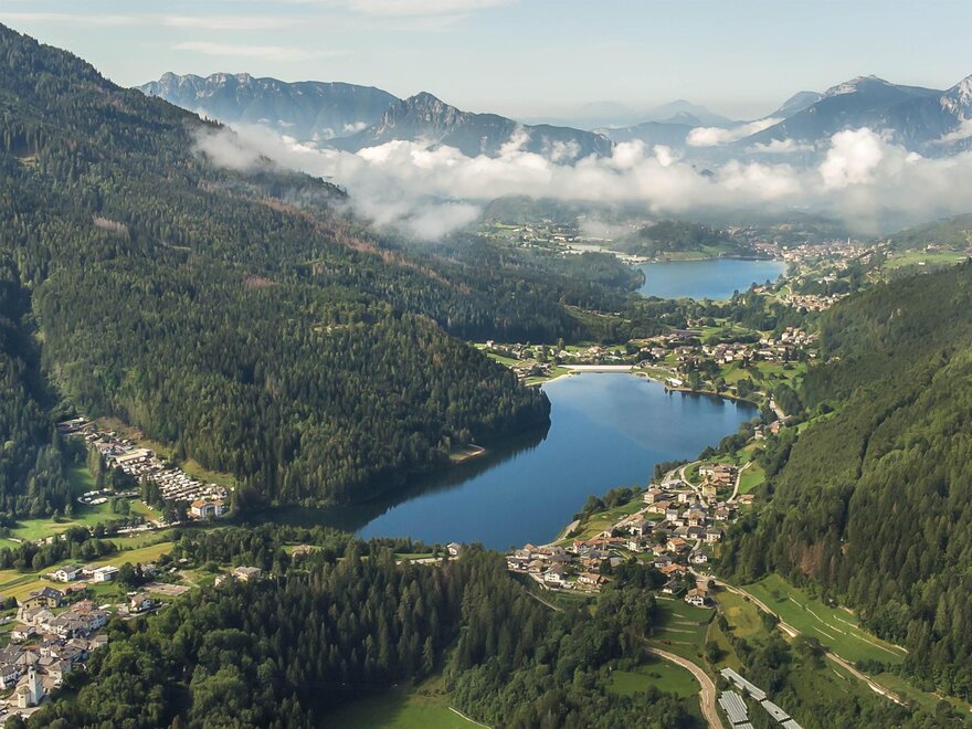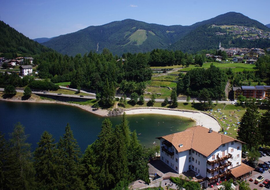 THE ANDREATTA FAMILY WELCOMES YOU! Cordiality and friendliness will always accompany you during your stay. Hotel Pineta is situated on the shore of Lake Piazze in a quiet and sunny area, surrounded by woods and meadows not far from the centre. The management and a family atmosphere offer genuine and accurate cuisine. All rooms with bathroom, balcony and telephone . Bar - living room - TV room - lift - games room - garden - private parking - beach - bowls. Near the hotel you will find Camping Pineta.