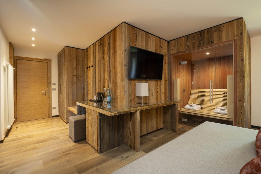 Недавно обновленные номера superior plus отеля Pineta предлагают приятную атмосферу, ощущения комфорта и отличного отдыха. Широкие и светлые, все номера выполнены из дерева, тщательно обставлены и предлагают все виды удобств для отпуска в Трентино в духе комфорта и релакса.