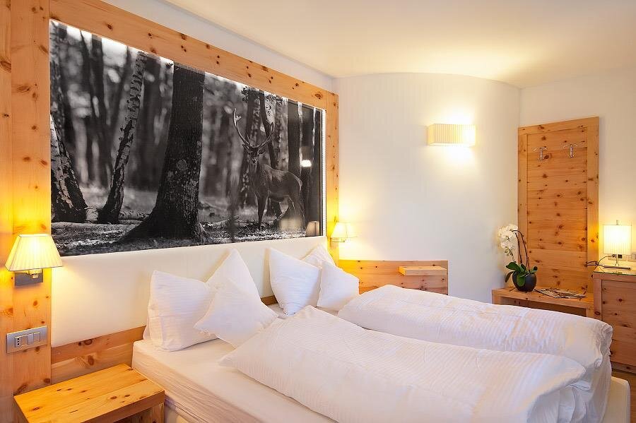 Недавно отель Pineta открыл новые дизайнерские номера, некоторые из которых выполнены из елового дерева, для хорошего отдыха и вашего благополучия! Создаваемая уютная атмосфера уникальна и очень ценится нашими клиентами. Местное дерево придаёт номеру не только приятный комфорт, но и оказывает положительное влияние на человеческий организм, например, снижая частоту сердечных сокращений или уменьшая метеозависимость. "Идеально для обретения мира и спокойствия, позволяя духу свободно парить во время глубокого сна." Номера и люксы отеля Pineta в Трентино, просторные и светлые, оформлены с заботой и имеют все удобства: •фен, •сейф, •телефон прямого набора, •Спутниковое ТВ, •бесплатный Wi-Fi Интернет •большинство с балконом с видом на озеро или сосновый лес.