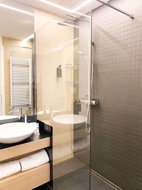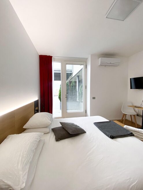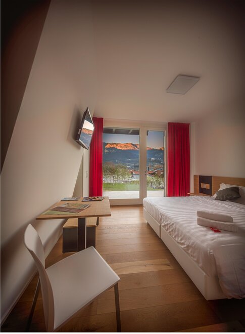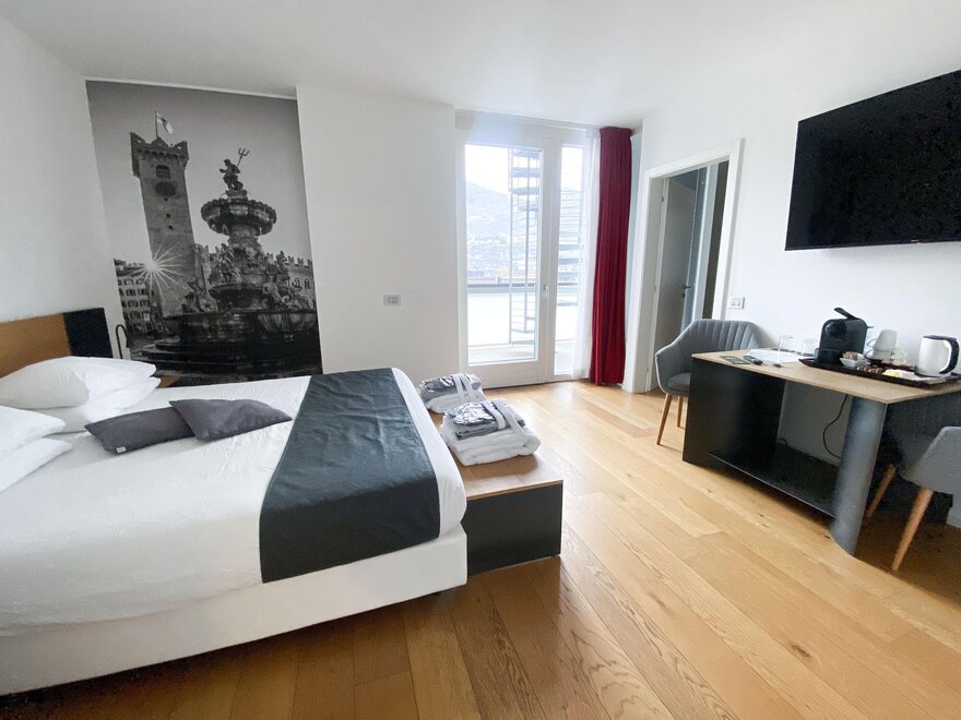 Одним из самых очаровательных аспектов этих номеров является приватный балкон, с которого вы сможете наслаждаться панорамным видом на город Тренто и на величественные горы вокруг него. Здесь, среди дыхания ветра и тепла солнца, у вас будет возможность насладиться мгновениями покоя и созерцания.
