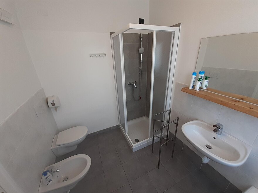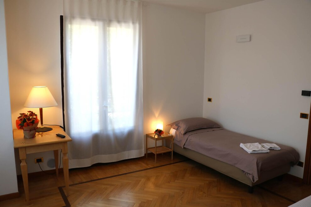 Spacious triple room with the possibility of adding a fourth bed, equipped with a private bathroom, flat-screen TV, free Wi-Fi, and a balcony with a lovely view of the garden.