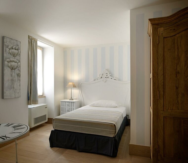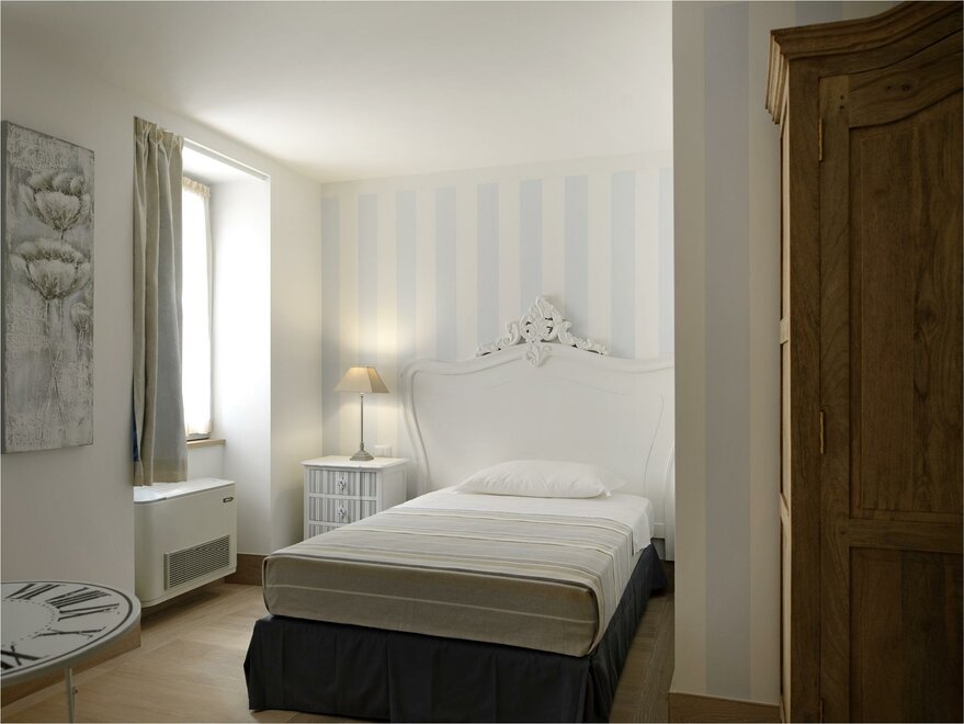 Простая и лаконичная элегантность, которая благодаря изысканным деталям, таким как изголовья кроватей в стиле французского романтизма, декорированные шкафы и дорогие занавеси, заставит вас потерять ощущение времени и перенесет в романтическую и волшебную атмосферу. Одноместные номера оборудованы просторной кроватью, чтобы сделать особенно комфортным и уютным пребывание тех, кто путешествует в одиночку. Учтены также потребности делового человека, все номера оснащены столиком, где можно работать и размещать документы и ноутбук.