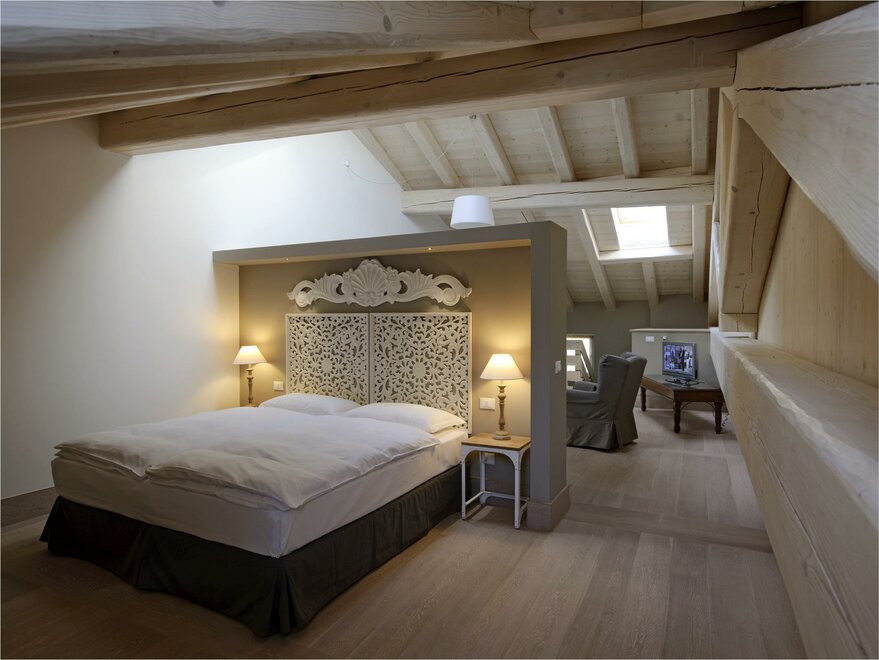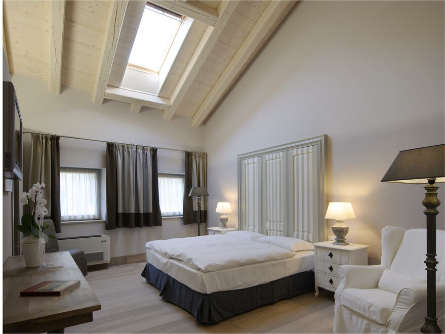 Charm and elegance are reflected in the junior suites, where you can relax and enjoy tranquility. Maximum expression of the perfect blend of antiques and modern design, they offer modern and technologic comforts, such as the large hydro-massage showers. At the same time, every small detail contributes to create a magical and unforgettable experience, like the headboards created with the original palace doors or a barn windows of South Tyrol brought to a new life to delight the visitors.