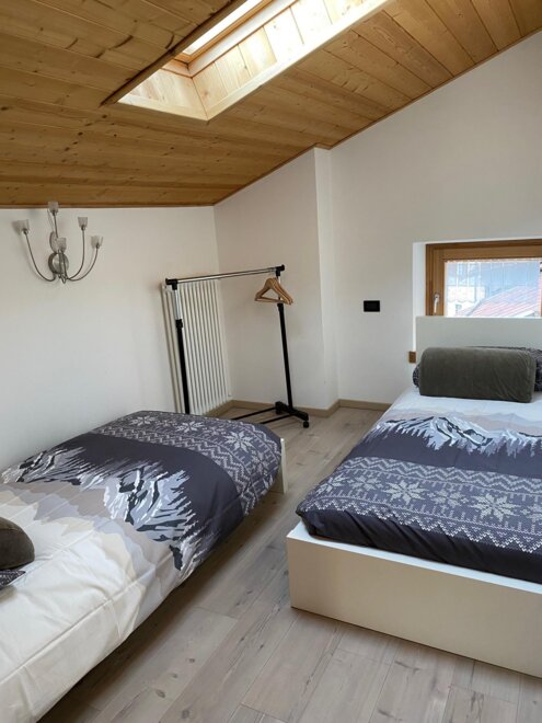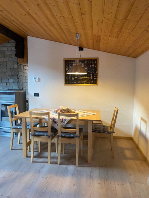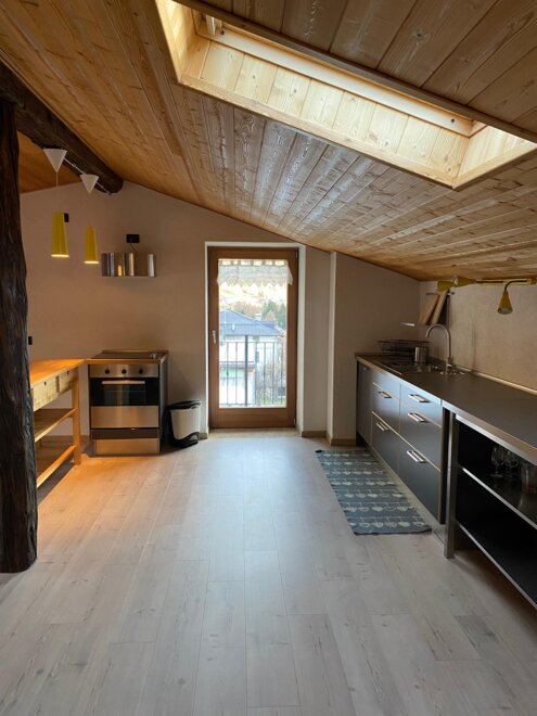 Мансарда — это решение для тех, кто ищет квартиру с кухней в Валле-ди-Соле, с автономностью в расписании и просторными помещениями для семей, пар или небольших групп. Оснащена всем необходимым: стиральная машина, посудомоечная машина, постельное и банное белье, моющие средства, посуда. Спальная комната с двуспальной кроватью + комната с двумя односпальными кроватями + раскладной диван в гостиной. Небольшой балкон с видом на замок Оссана с столиком и стульями.