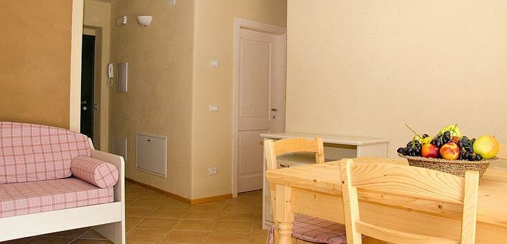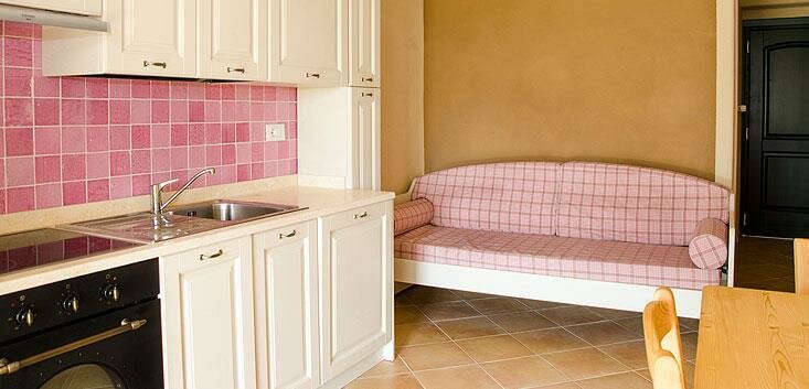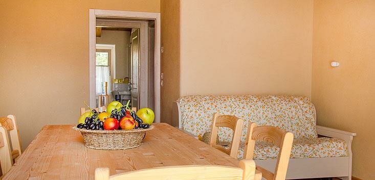 The apartments are three-room units accommodating 5 or 6 guests, consisting of a double bedroom, a small bedroom with 2 single beds, and a spacious kitchen-living room with a comfortable sofa bed, either double or single.